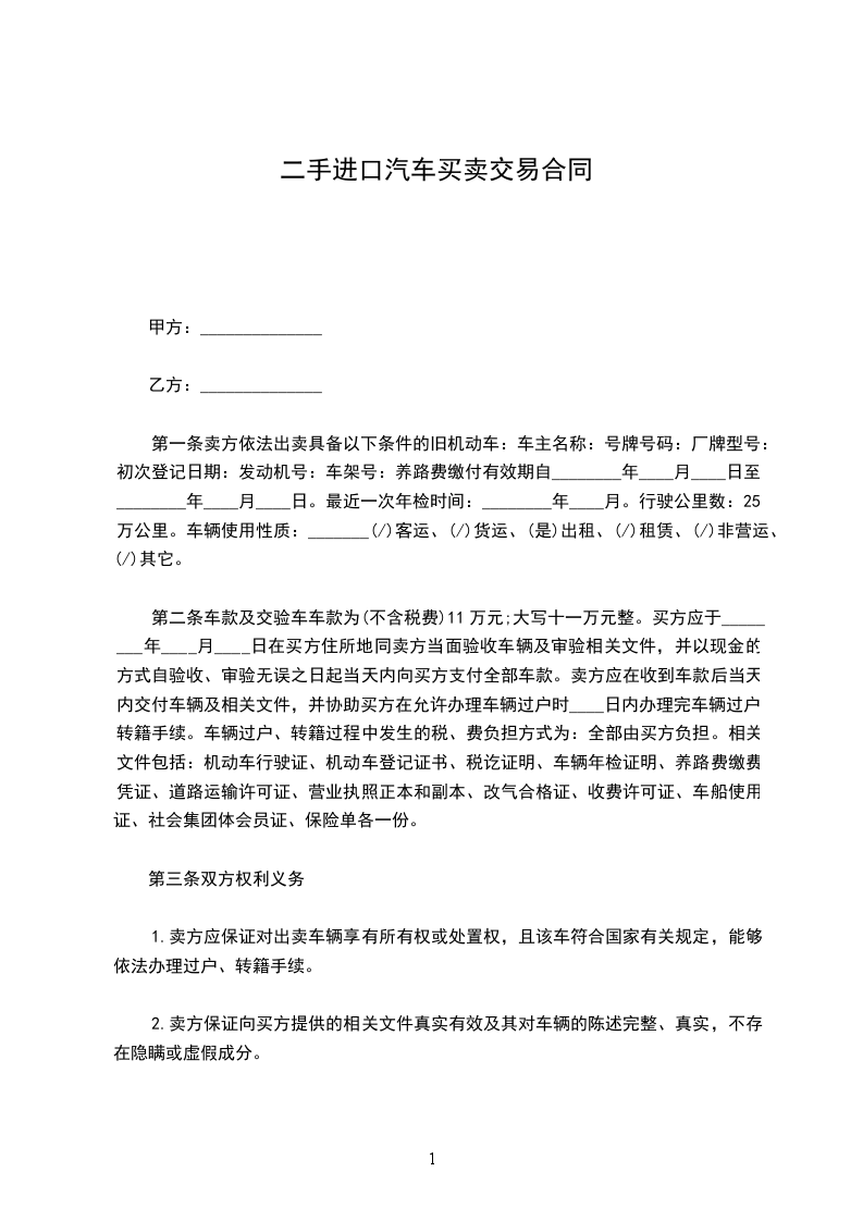 第一条 车辆信息:_______