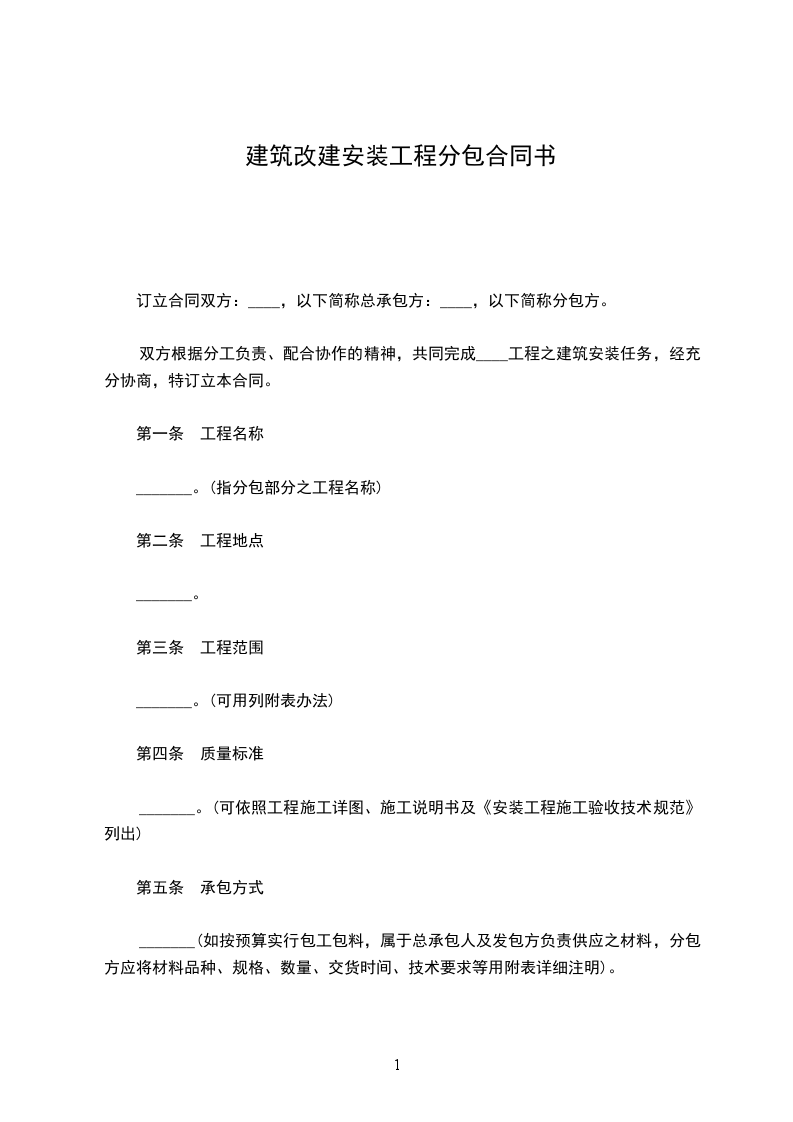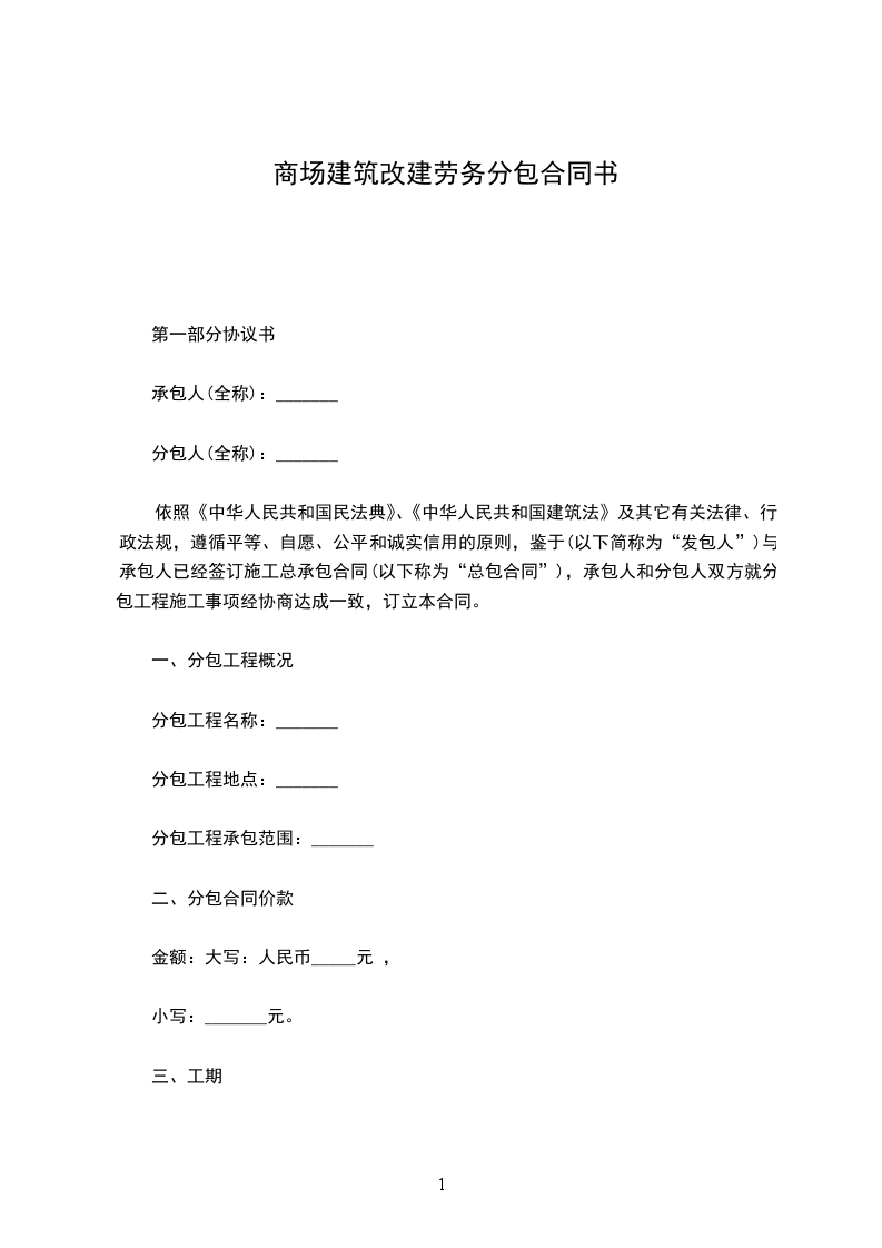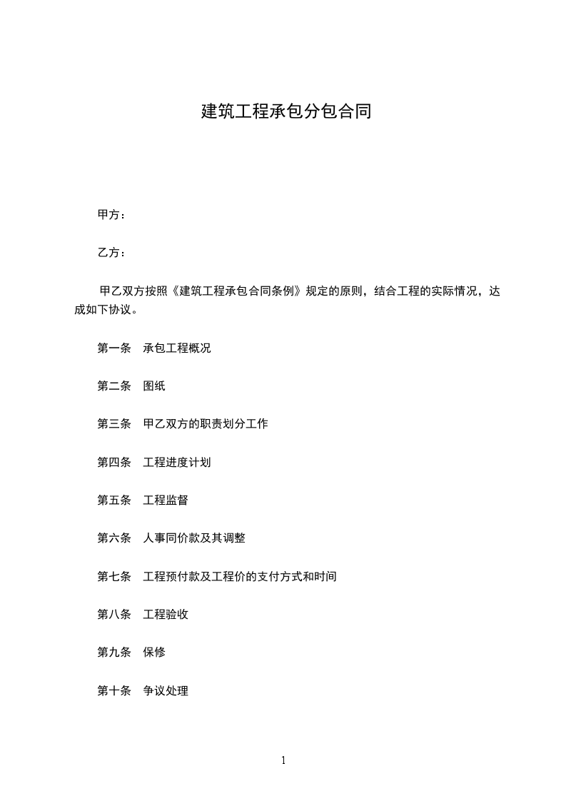 依照《中华人民共和国民法典》、《中华人民共和国建筑法》及其它有关法律、行政法规,遵循平等、自愿、公平和诚实信用的原则,鉴于(以下简称为“发包人”)与承包人已经签订施工总承包合同(以下称为“总包合同”),承包人和分包人双方就分包工程施工事项经协商达成一致,订立本合同。