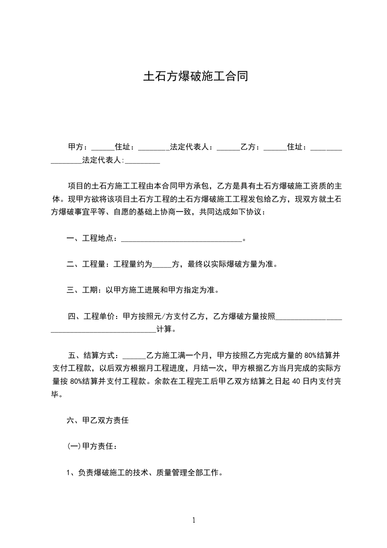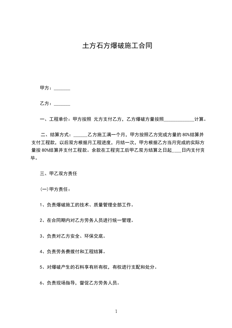 3. 甲方须满足乙方每天所需的火工材料,让乙方施工正常。