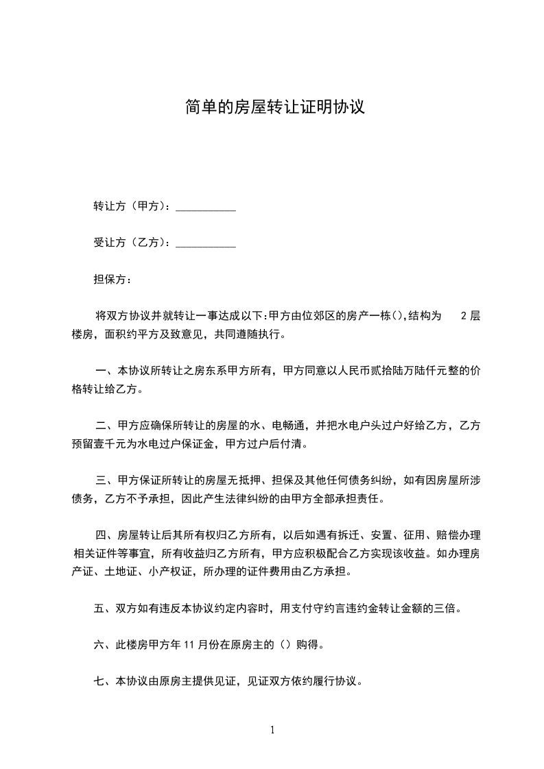 将双方协议并就转让一事达成以下:甲方由位郊区的房产一栋(),结构为2层楼房,面积约平方及致意见,共同遵随执行。