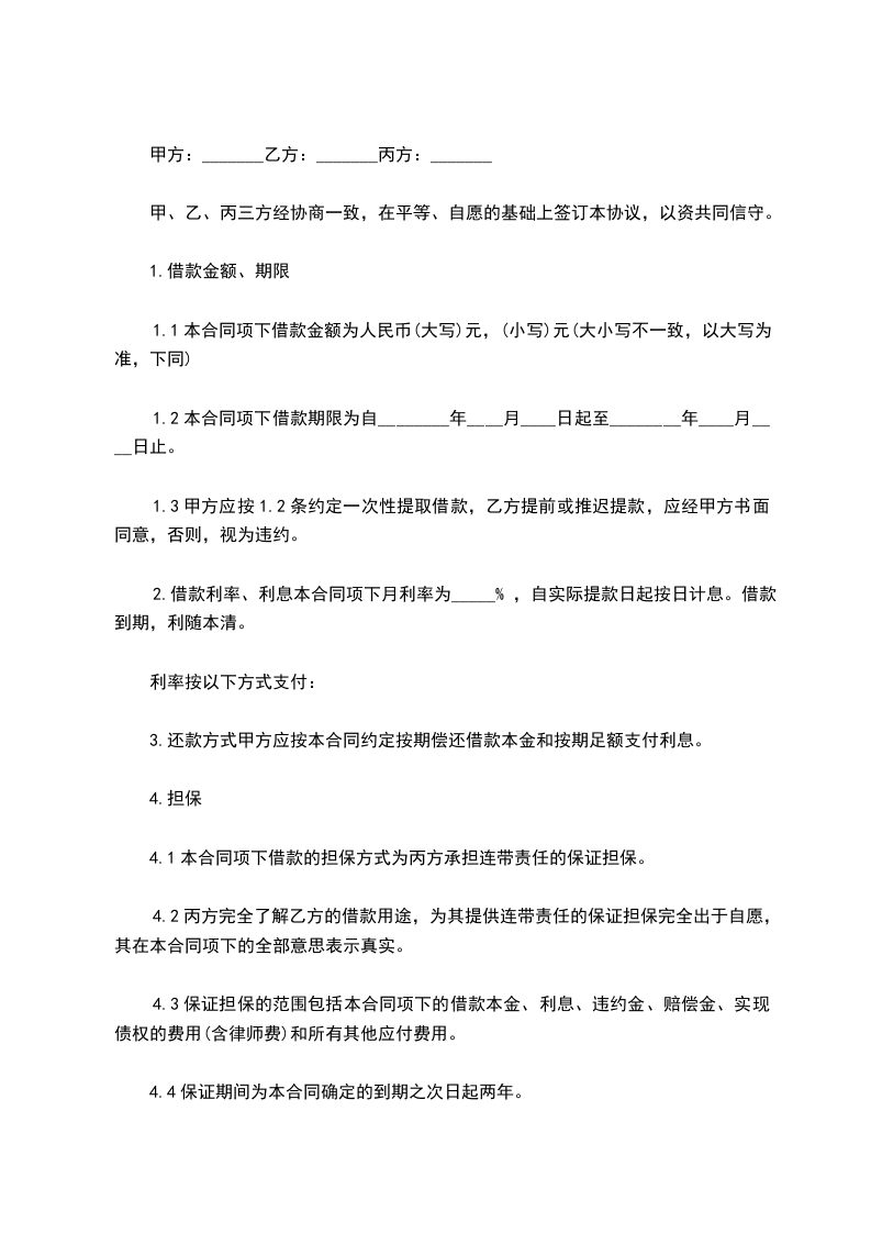 第八条本合同经借款方、贷款方、保证方签章后生效,至此项借款本息全部还清后终止。合同正本三份:借款方、贷款方、保证方各执一份;副本四份:报送人民银行一、二级分行,当地工商行政管理局、税务局。