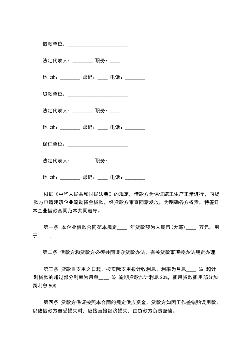 第二条贷款方根据借款方以下借款用同意贷款___万元。贷款期限:自________年____月____日至________年____月____日。贷款方按照各项贷款办法规定的利率档次,计息时间,向借款方计收利息。借款用途:购置设备___台(套)___万元;土建____平方米____万元;其它_____万元。