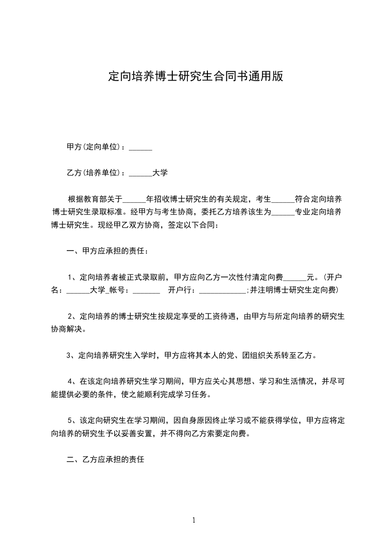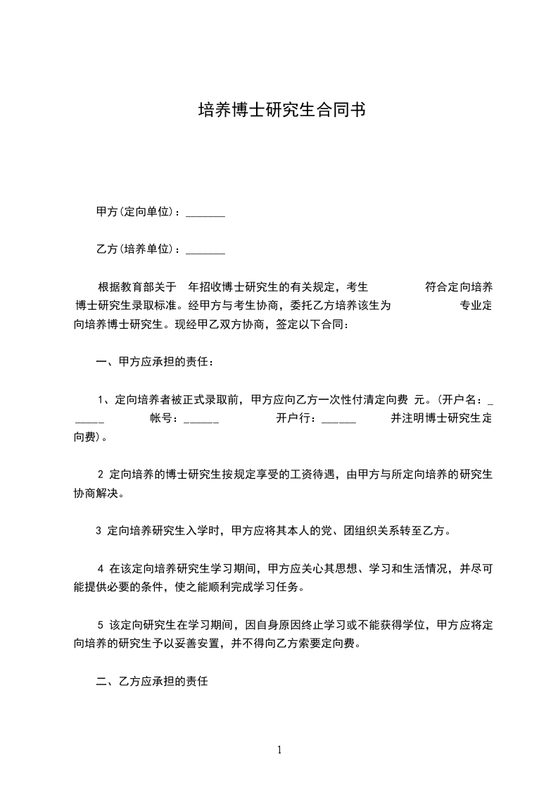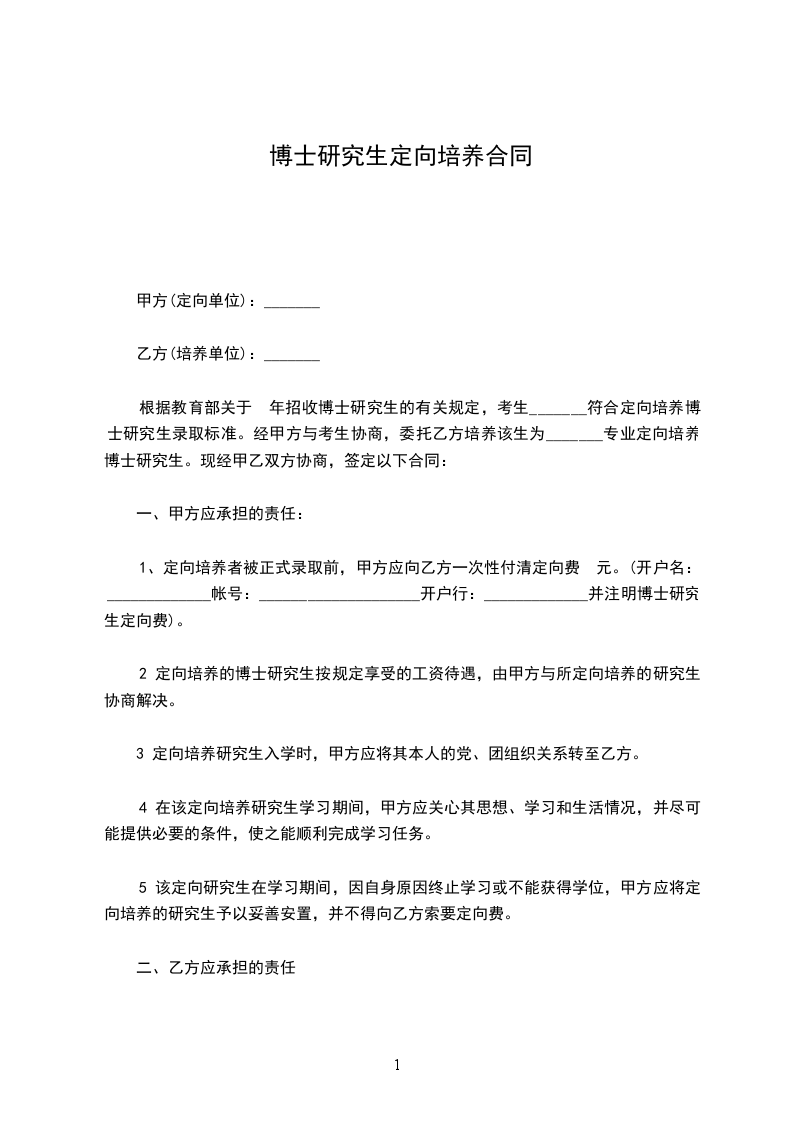 根据教育部关于 年招收博士研究生的有关规定,考生_______符合定向培养博士研究生录取标准。经甲方与考生协商,委托乙方培养该生为_______专业定向培养博士研究生。现经甲乙双方协商,签定以下合同: