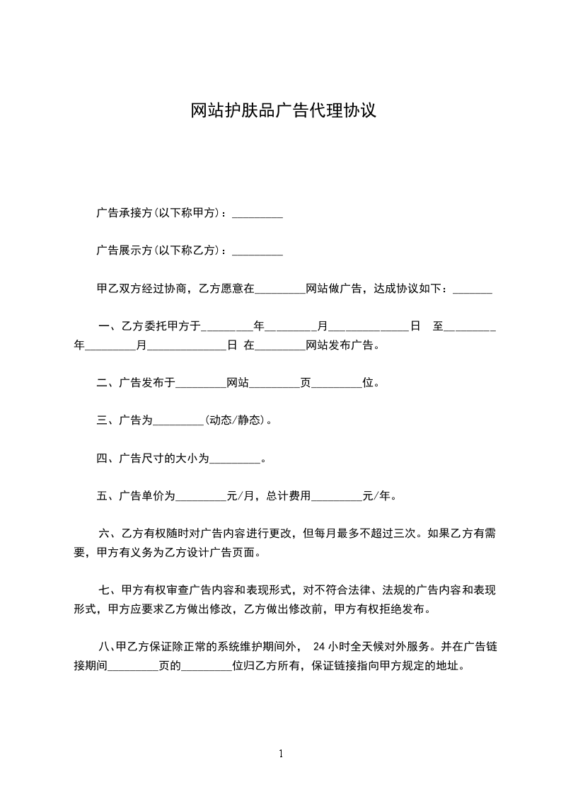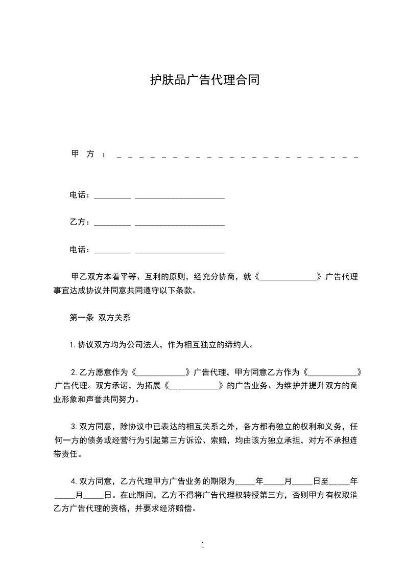 1.本协议一式两份双方各执一份,具有同等的法律效力. 自双方签字盖章之日起生效,有效期________年,协议到期停止执行. 但在双方帐务、事务未清之前,协议条款继续生效,如帐务、事务结付完毕此协议条款自行作废,如继续执行,协议重签才有效。