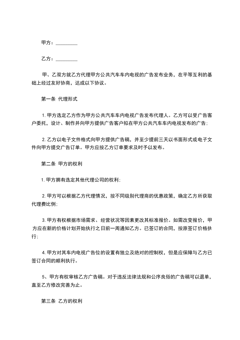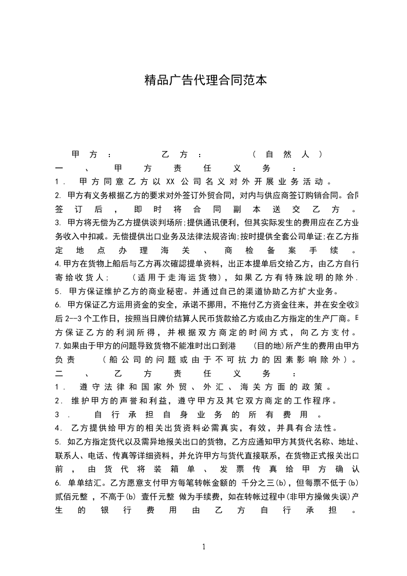 2.甲乙双方在执行过程中,若对本协议上述条款有不同的见解和异议,需经双方协商研究同意后方能够进行修改和补充。补充或修改的內容应以书面提出并经双方签章后生效,并与本代理出口合同具有同等的法律效力。 甲方:乙方: 法人代表:身份证号: 签订日期:________年____月____日 签订日期:年____月____日