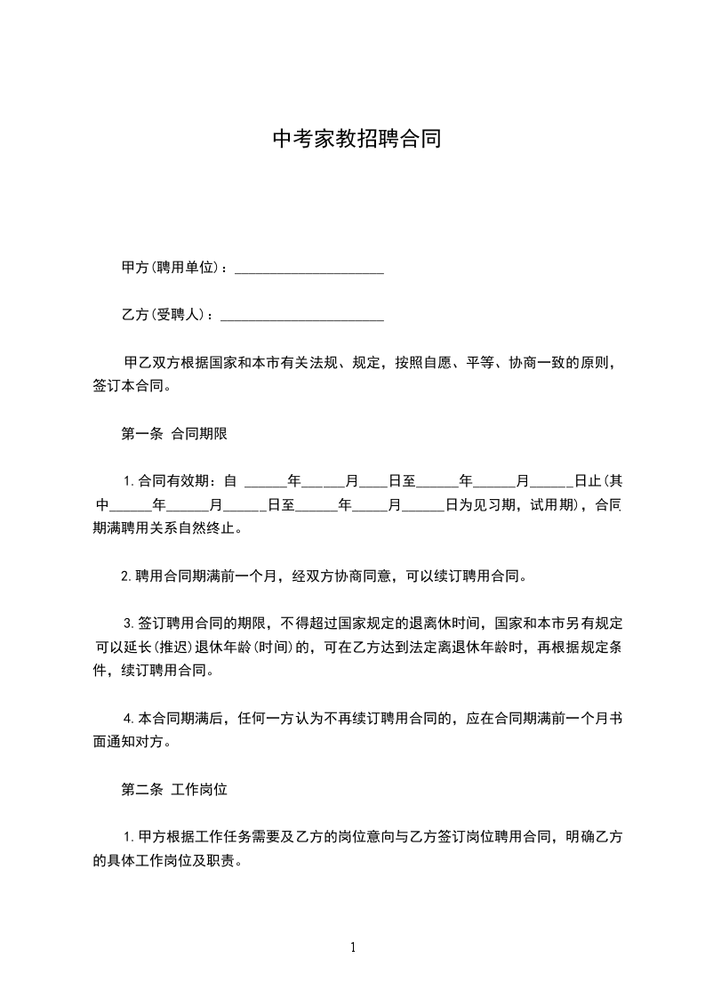 中考家教招聘合同