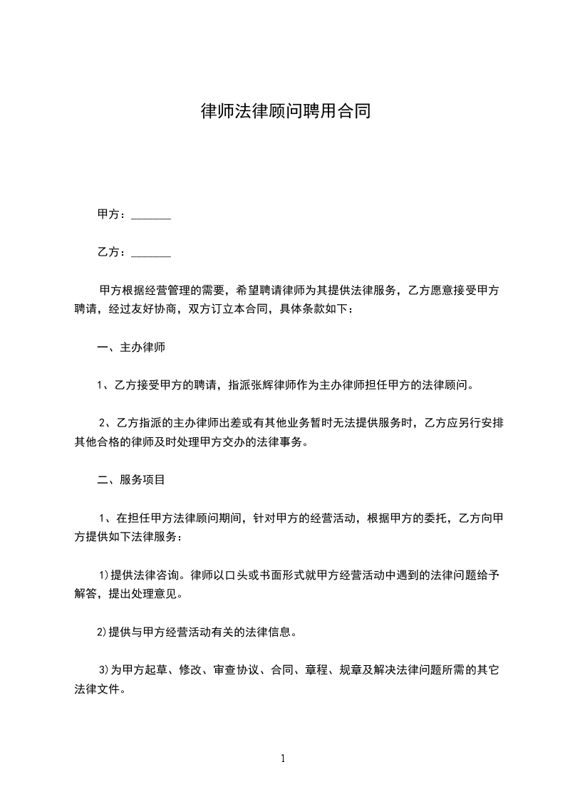 第一条:甲方为维护自身合法权益,根据《中华人民共和国律师法》的有关规定,聘请乙方律师为其法律顾问。