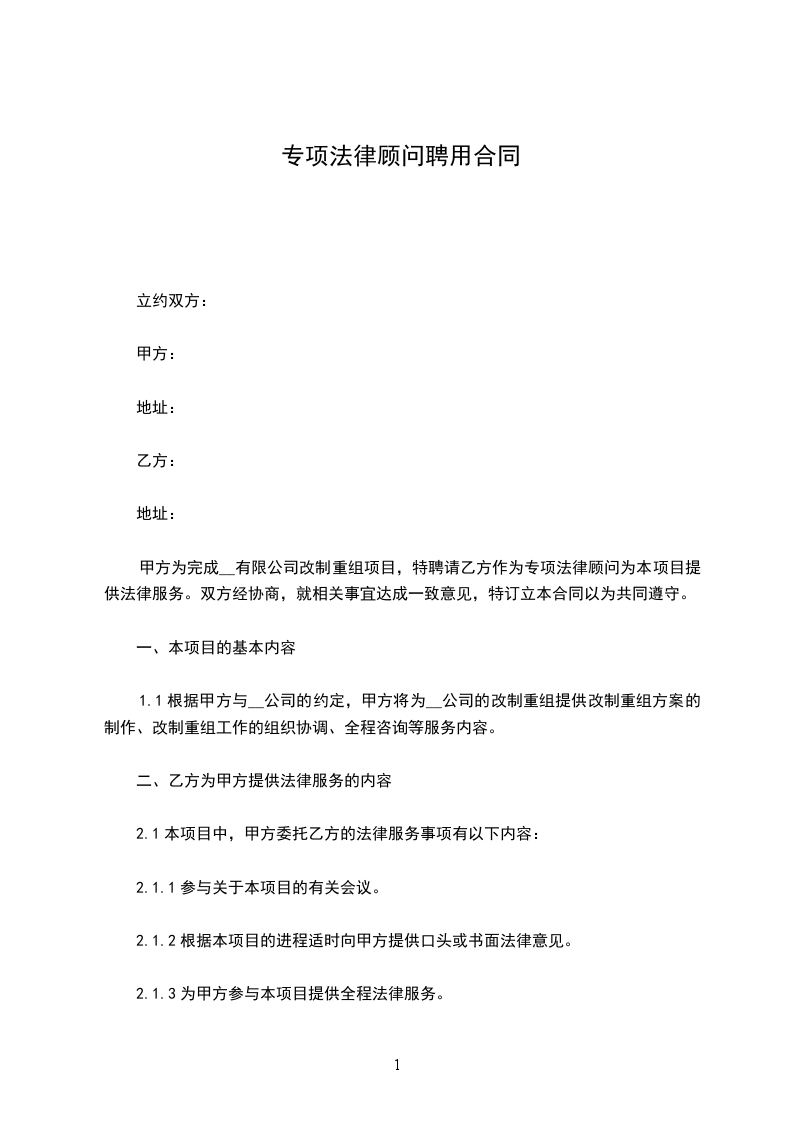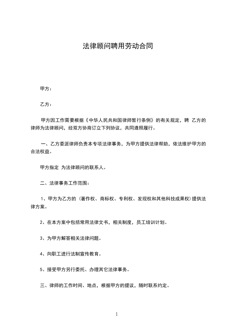 第三条:______乙方的法律服务范围: