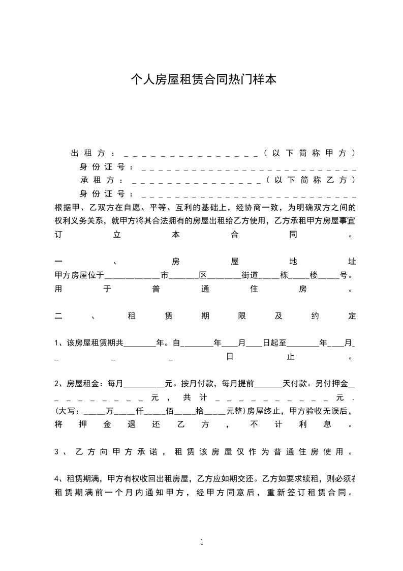 3、乙方向甲方承诺,租赁该房屋仅作为普通住房使用。