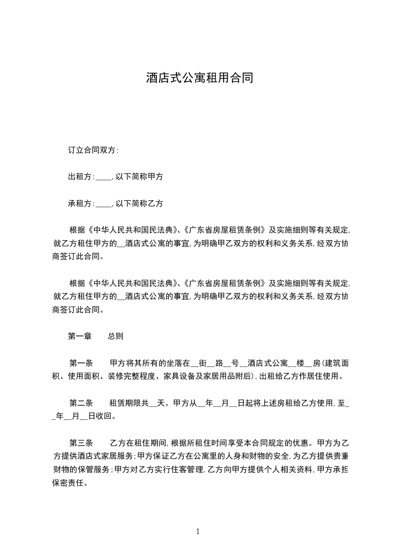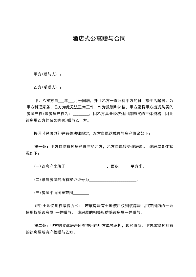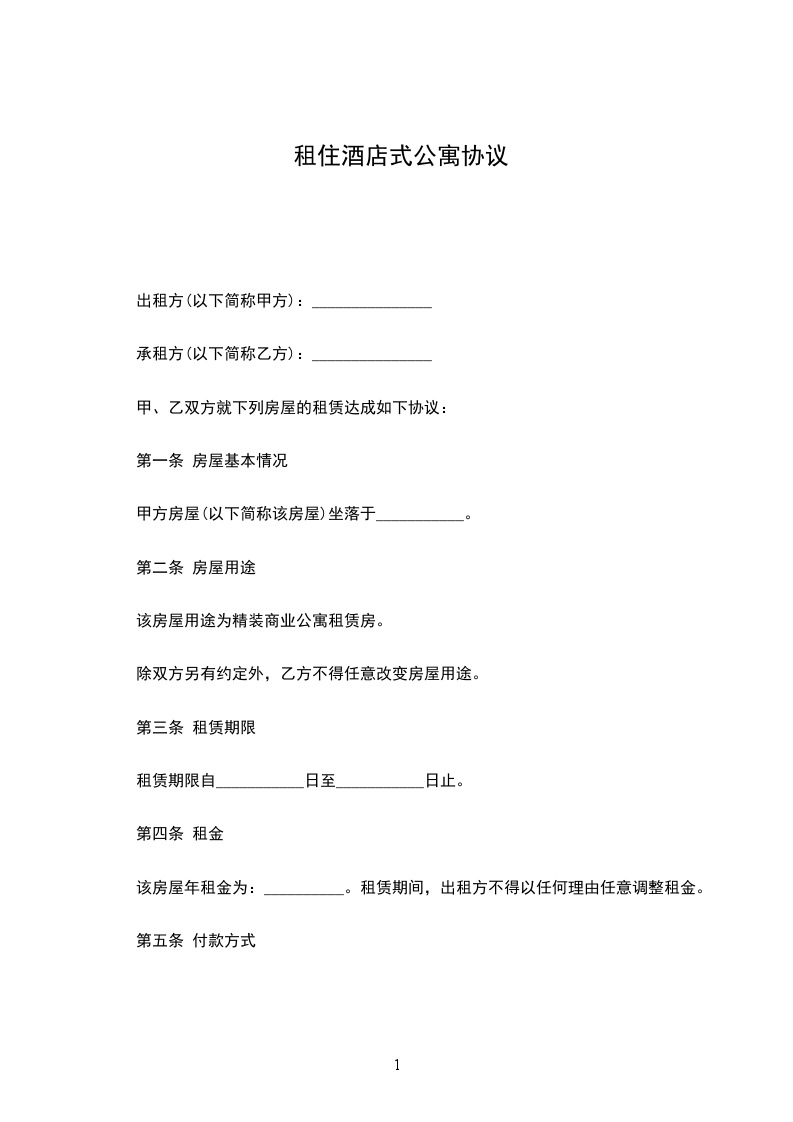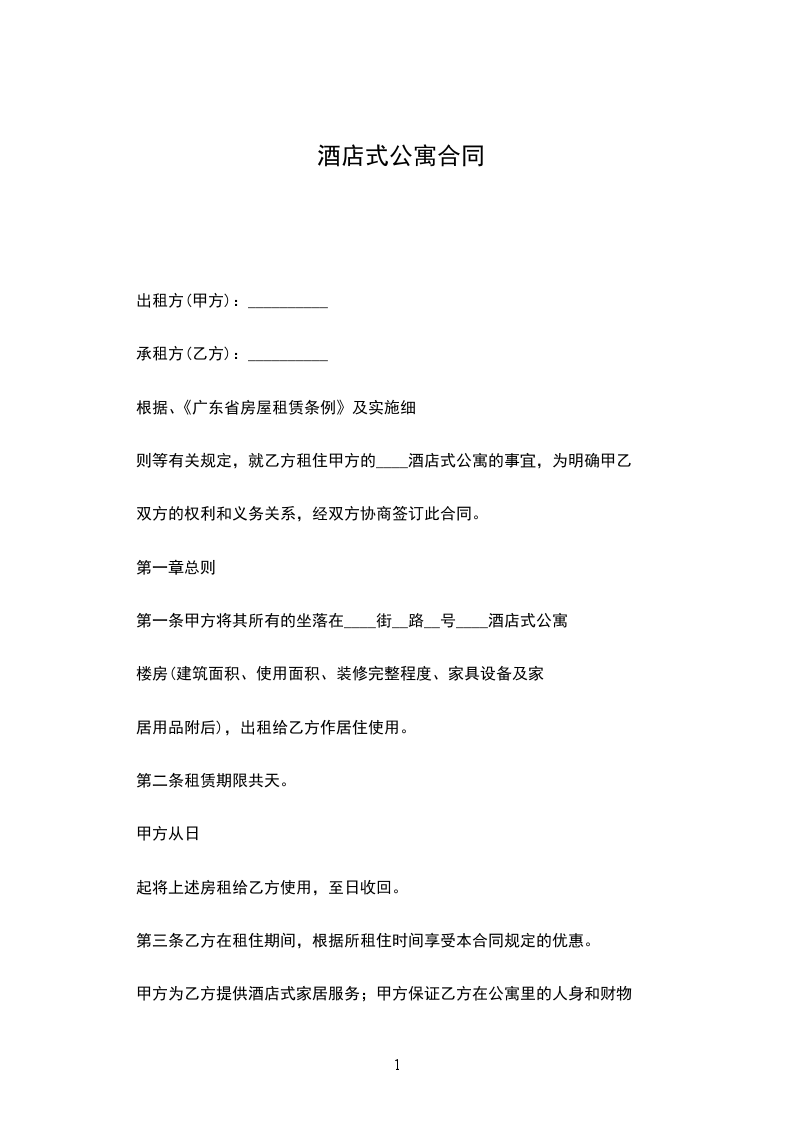 第一条甲方将其所有的坐落在____街__路__号____酒店式公寓