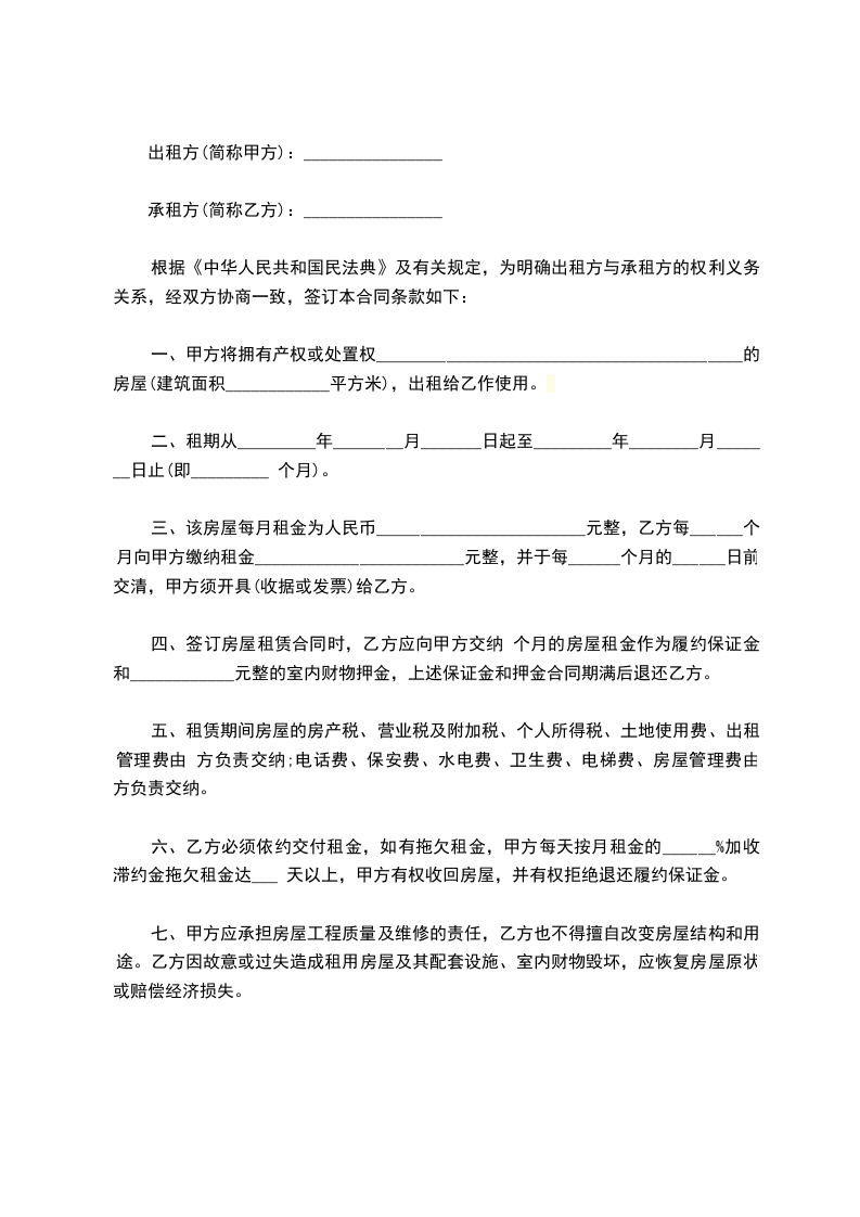 承租方(乙方):__________