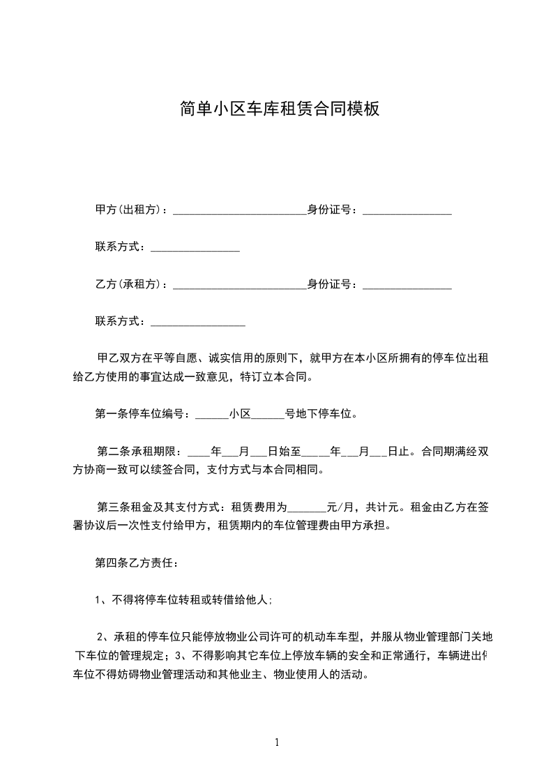 甲乙双方在平等自愿、诚实信用的原则下,就甲方在本小区所拥有的停车位出租给乙方使用的事宜达成一致意见,特订立本合同。