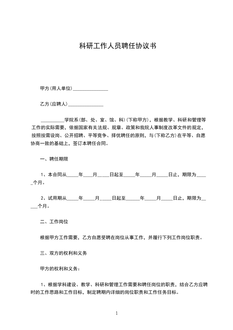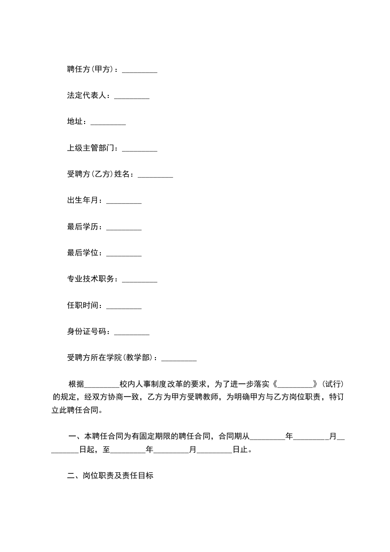 一、本聘任合同为有固定期限的聘任合同,合同期从_________年_________月_________日起,至_________年_________月_________日止。