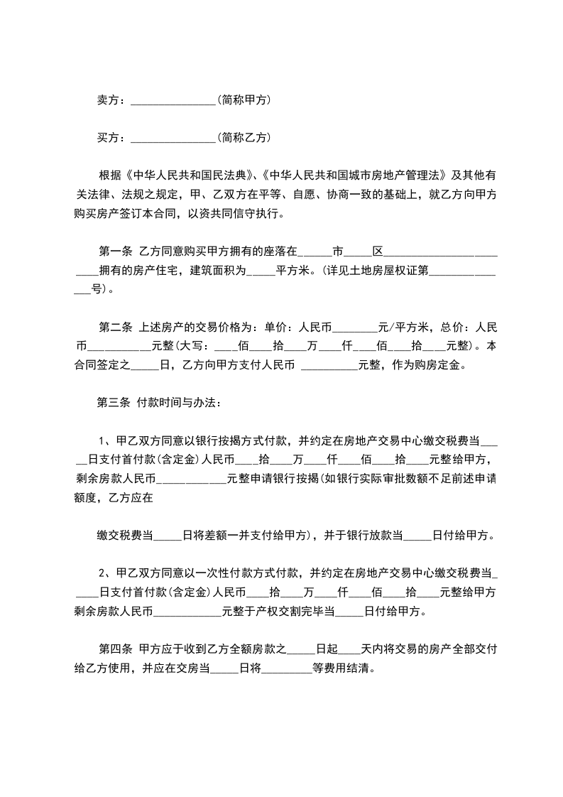 出卖方(甲方):_________________ 购买方(乙方):__________________