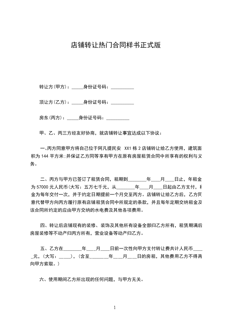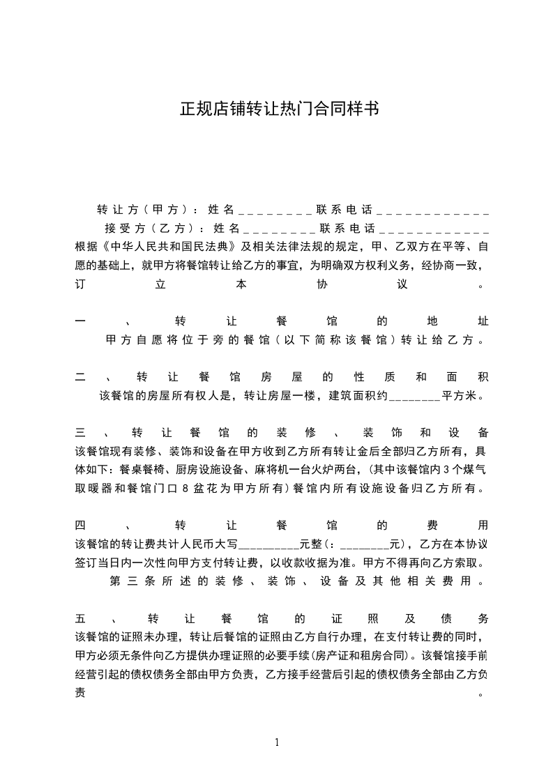 该餐馆的转让费共计人民币大写__________元整(:________元),乙方在本协议签订当日内一次性向甲方支付转让费,以收款收据为准。甲方不得再向乙方索取。