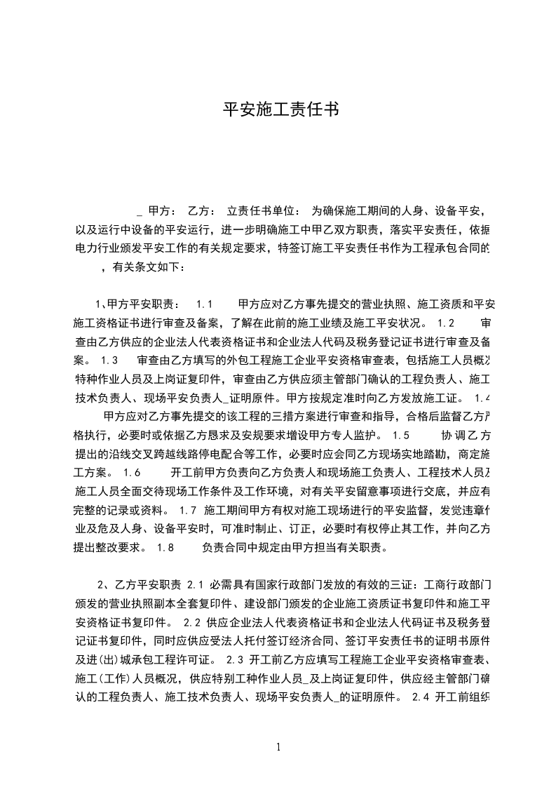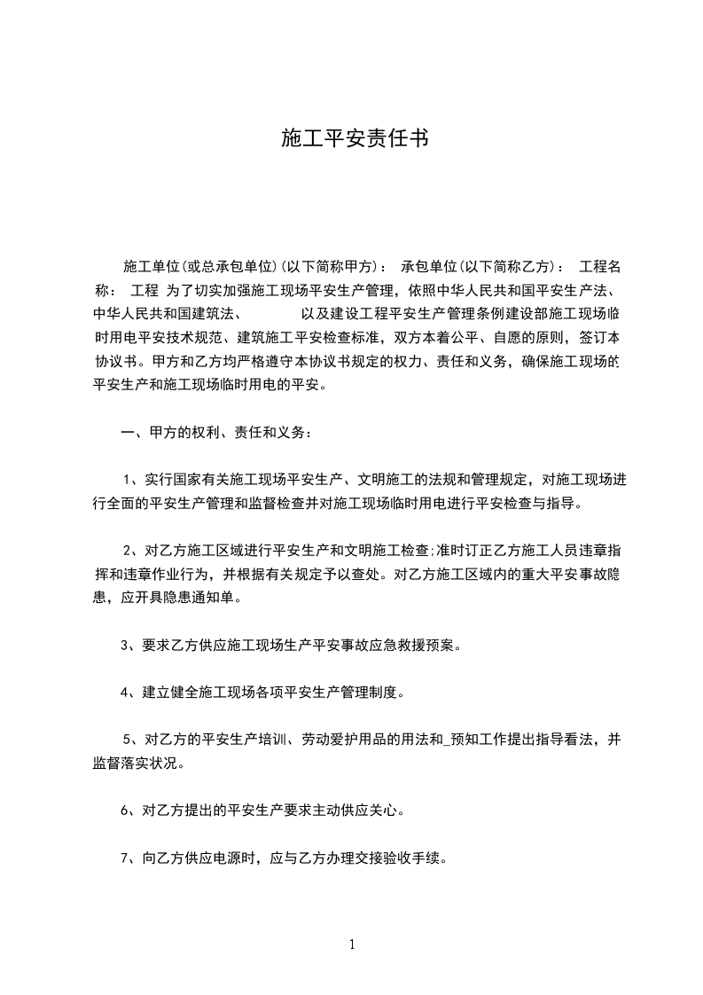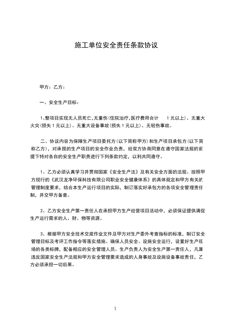 为了搞好工程项目施工作业的安全管理工作,做到“各司其职、各负其责”。经双方协商签订本合同。