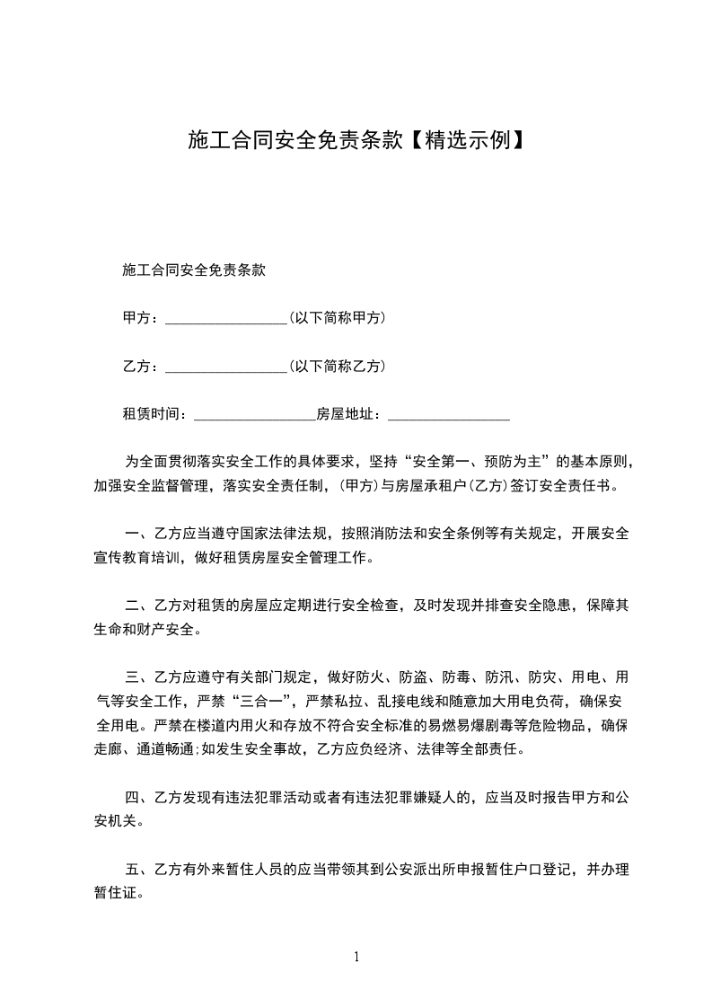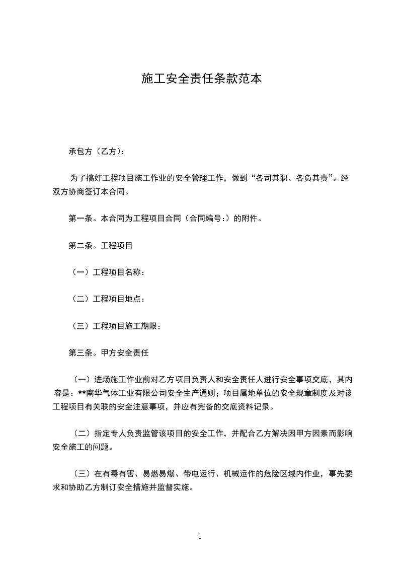 第五条。甲、乙双方严格遵守本合同条款,履行各自的安全职责,搞好文明施工作业。