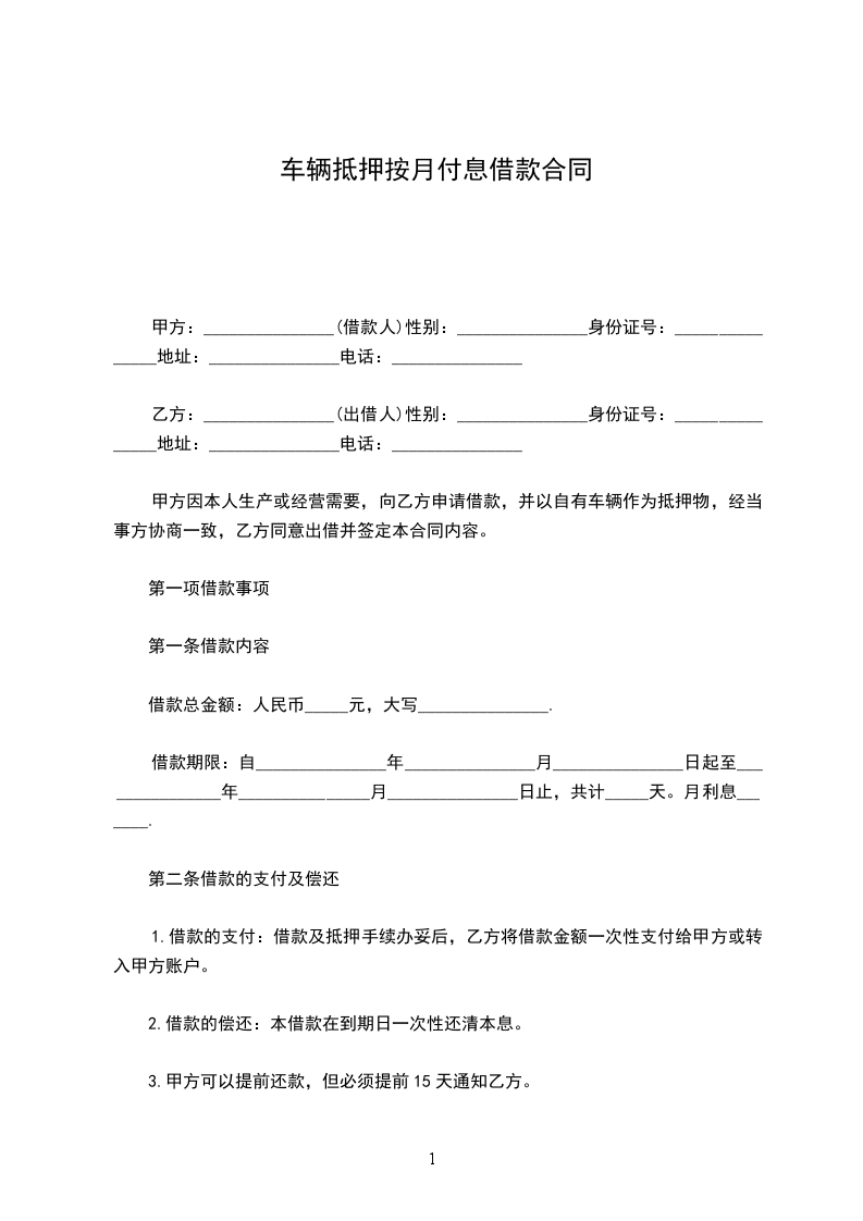 借款期限:自_______________年_______________月_______________日起至_______________年_______________月_______________日止,共计_____天。月利息_______.