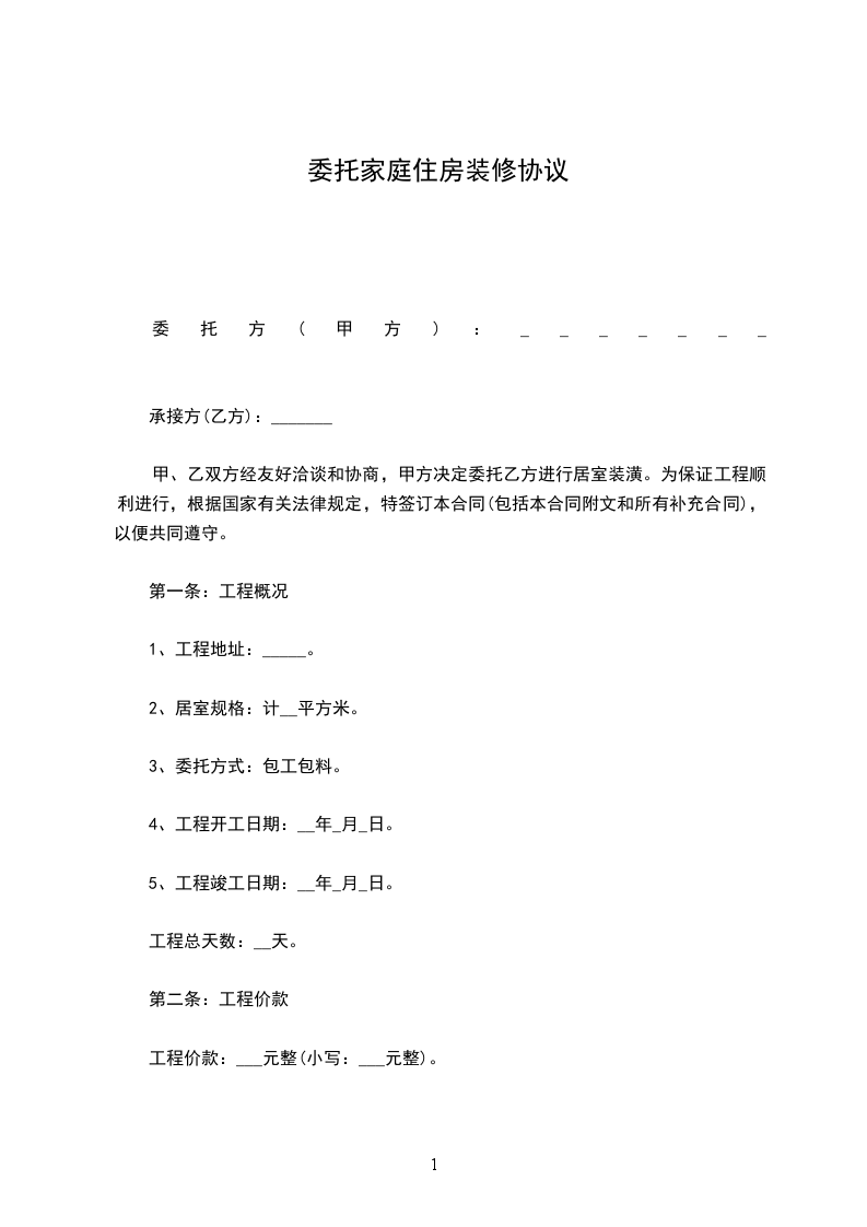 甲、乙双方经友好洽谈和协商,甲方决定委托乙方进行居室装修。为保证工程顺利进行,根据国家有关法律规定,特签订本合同,以便共同遵守。