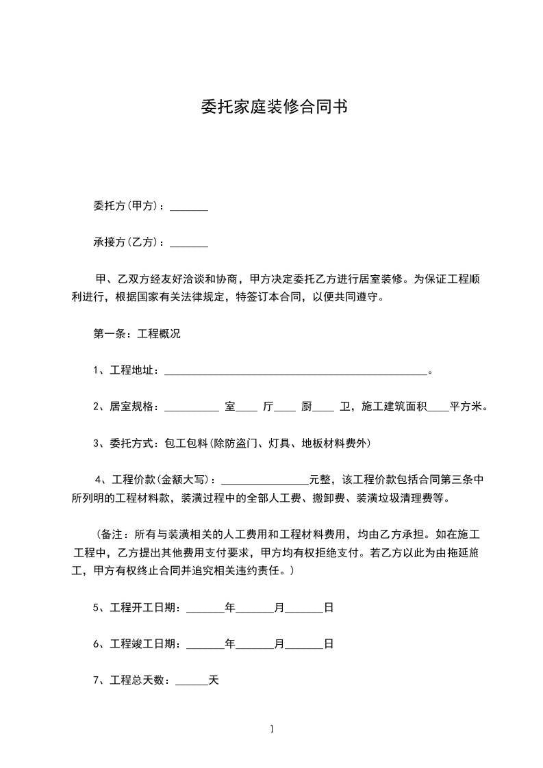 3、委托方式:包工包料(除防盗门、灯具、地板材料费外)