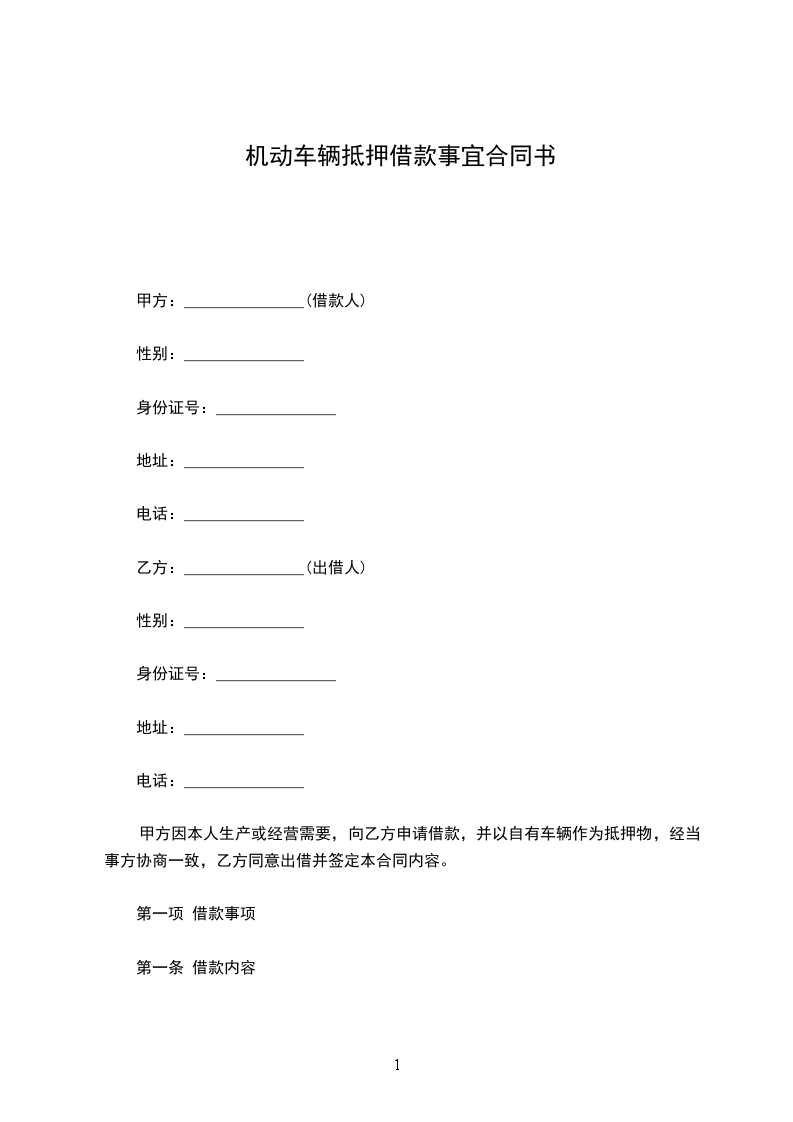 甲方因本人生产或经营需要,向乙方申请借款,并以自有车辆作为抵押物,经当事方协商一致,乙方同意出借并签定本合同内容。