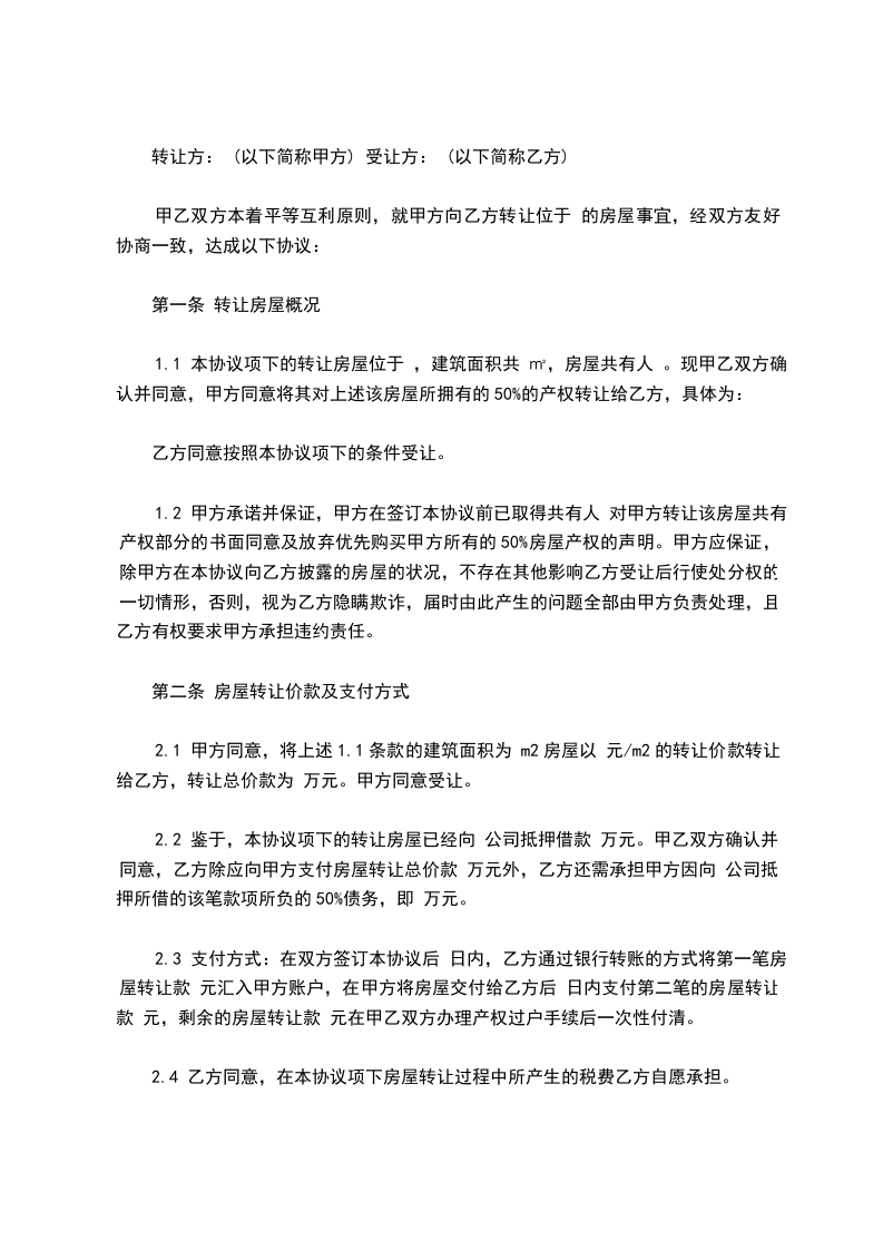 2.乙方承担房产交易中房产局应征收乙方的交易额的____%的交易费,承担房产交易中国家征收的一切其他税费。