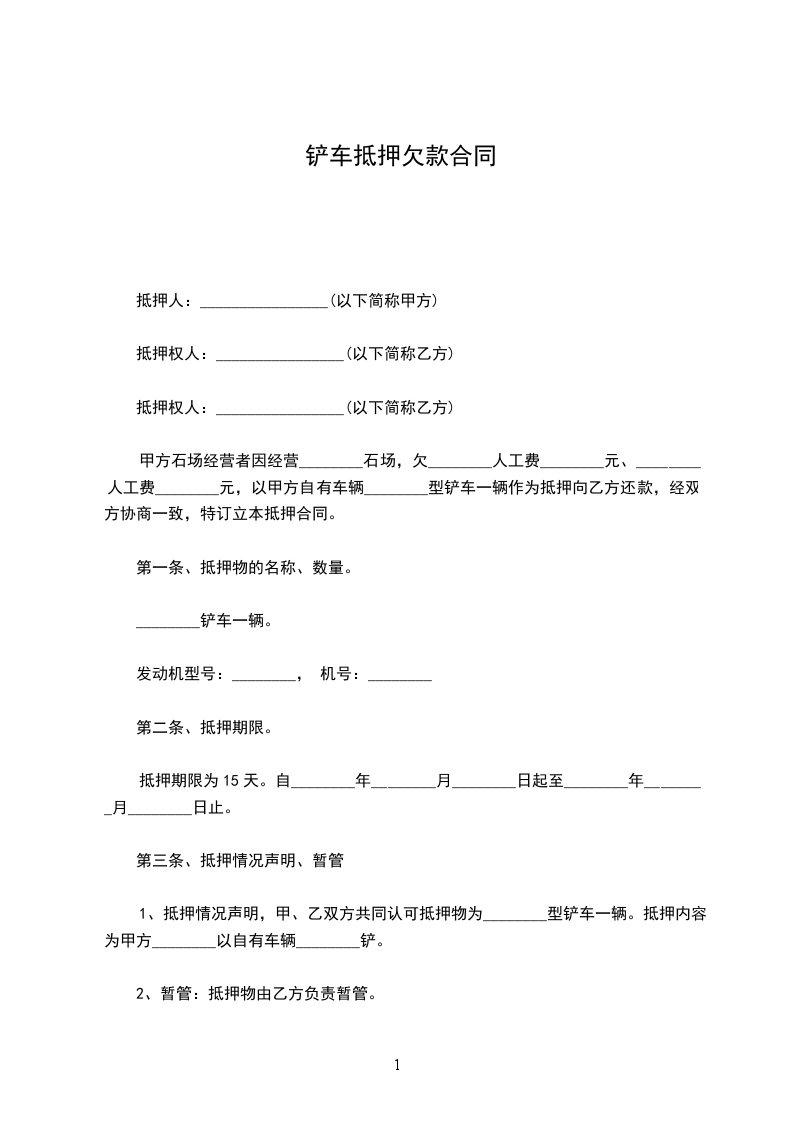1.抵押物由乙方保管,在抵押期间,乙方无偿使用该车辆,保证该车辆无任何交通事故及违章。若是由于车辆自身原因或自然损坏,不可抗力等因素造成的车辆损失,免除乙方赔偿责任。