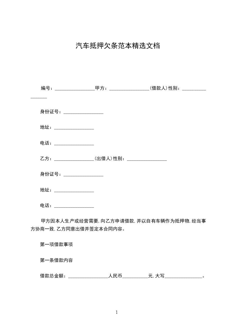 第一条 抵押物的名称、数量和价值