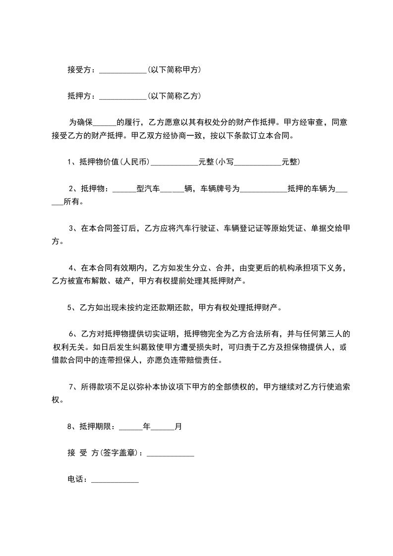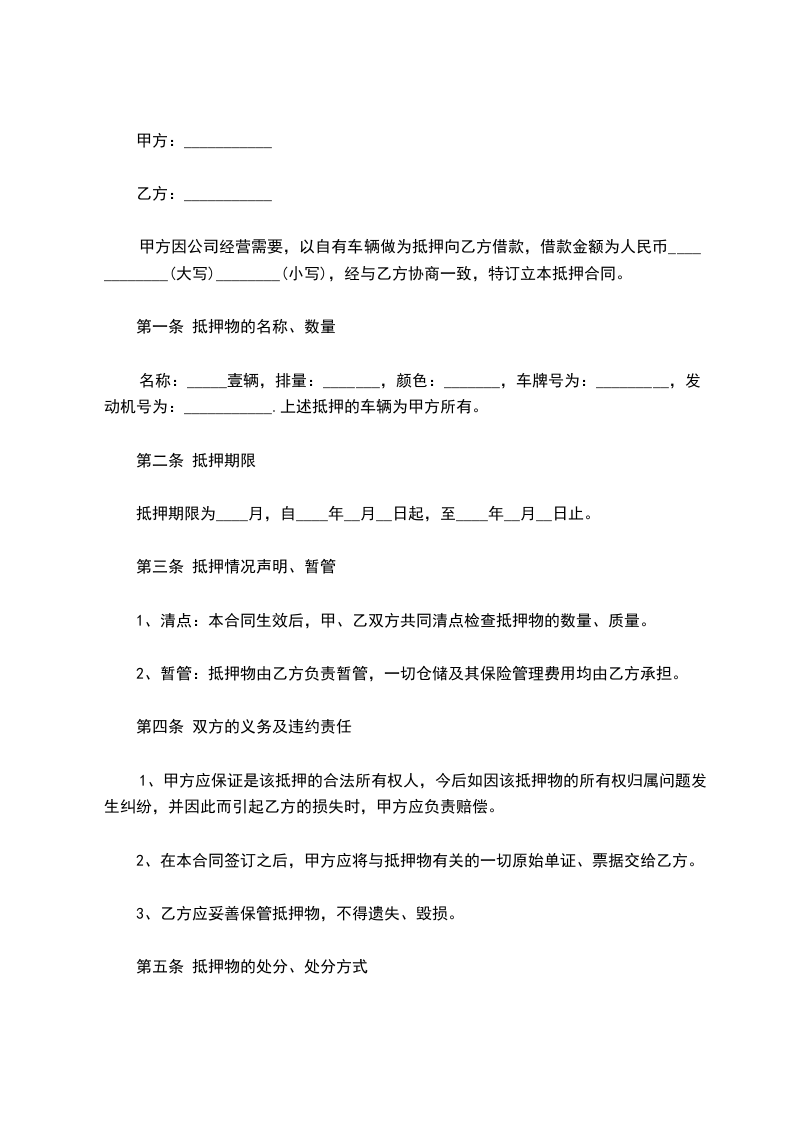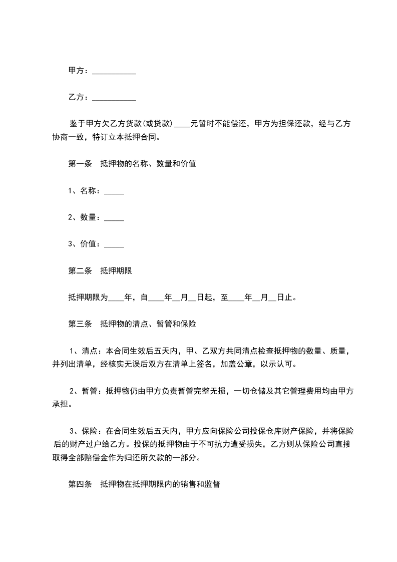 2、暂管:抵押物仍由甲方负责暂管完整无损,一切仓储及其它管理费用均由甲方承担。