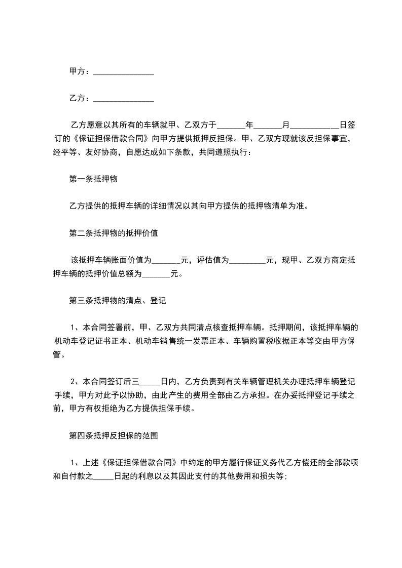 3、保险:在合同生效后五天内,甲方应向保险公司投保仓库财产保险,并将保险后的财产过户给乙方。投保的抵押物由于不可抗力遭受损失,乙方则从保险公司直接取得全部赔偿金作为归还所欠款的一部分。
