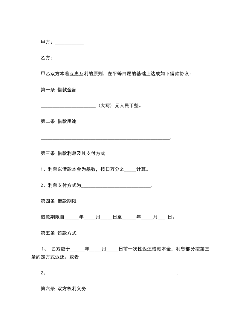 甲乙双方本着互惠互利的原则,在平等自愿的基础上达成如下借款协议: