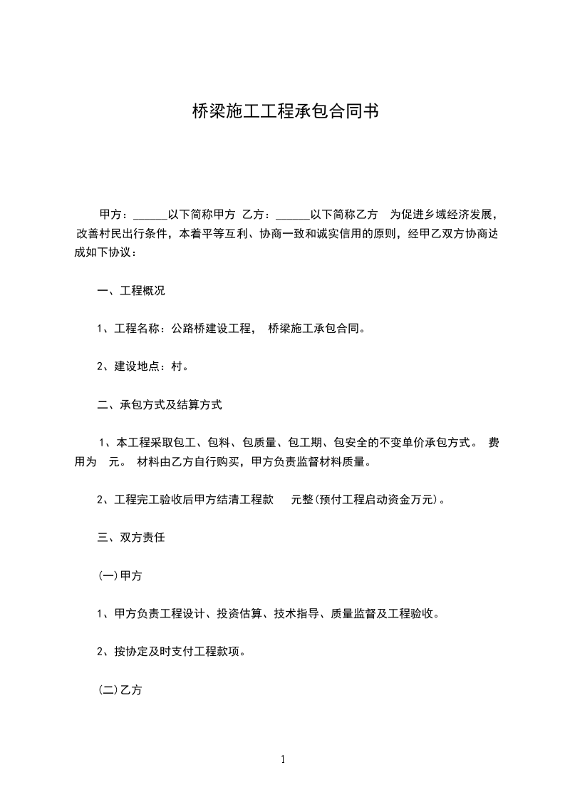 1、工程名称:公路桥建设工程, 桥梁施工承包合同。