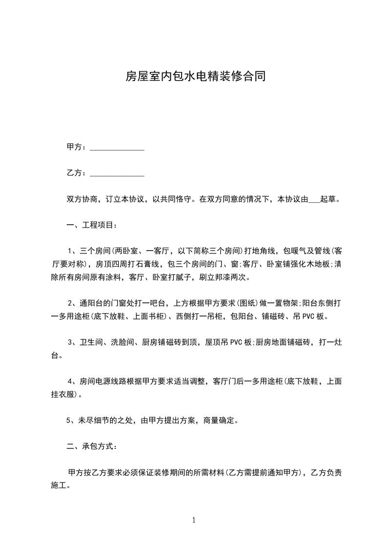 1、三个房间(两卧室、一客厅,以下简称三个房间)打地角线,包暖气及管线(客厅要对称),房顶四周打石膏线,包三个房间的门、窗;客厅、卧室铺强化木地板;清除所有房间原有涂料,客厅、卧室打腻子,刷立邦漆两次。