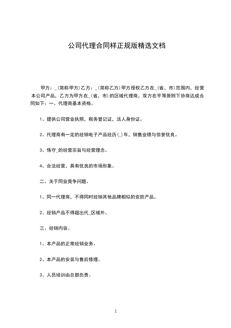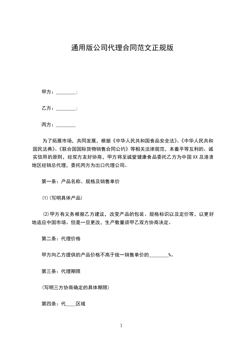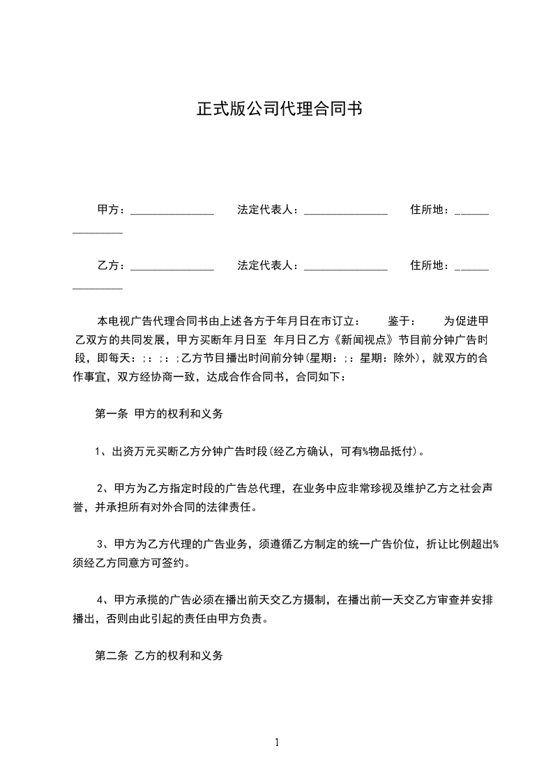 第一条 代理内容