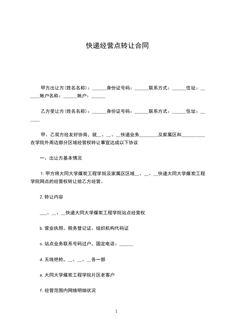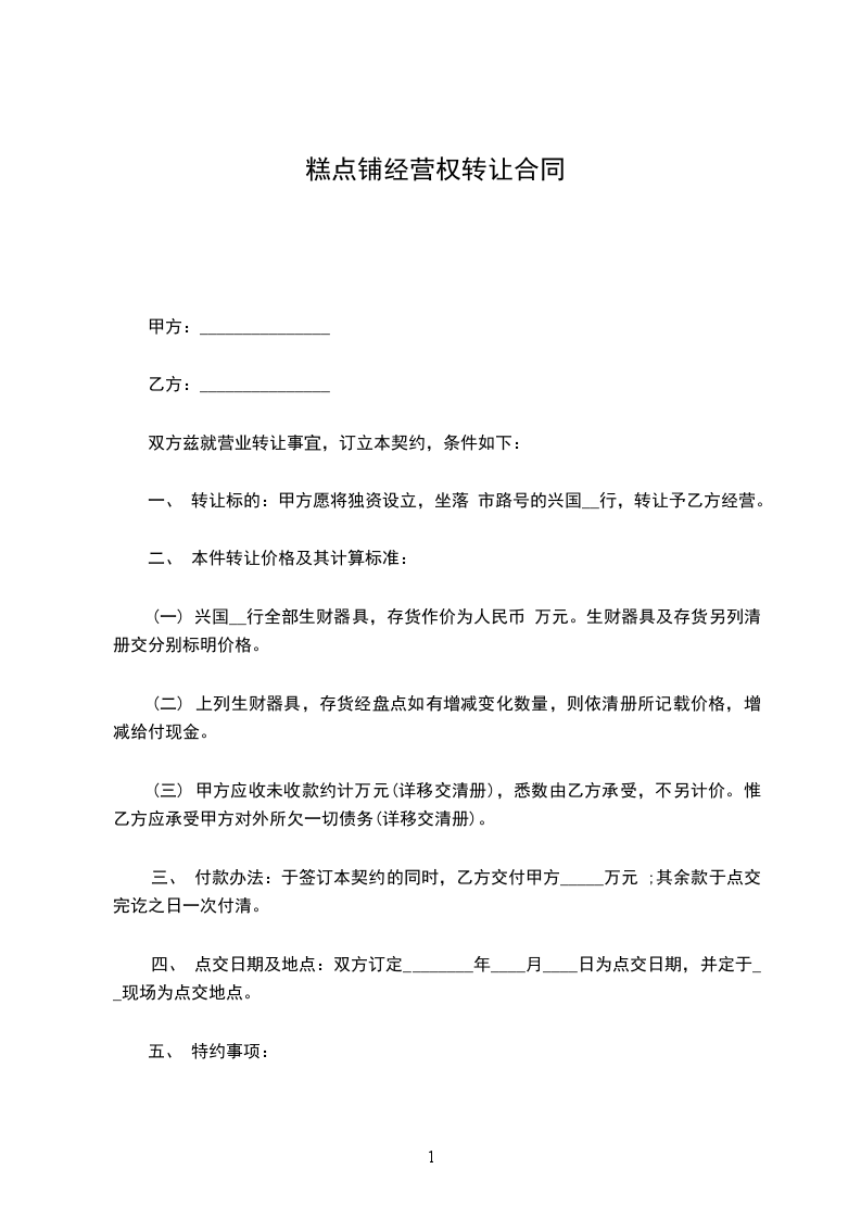 一、 转让标的:甲方愿将独资设立,坐落 市路号的兴国__行,转让予乙方经营。