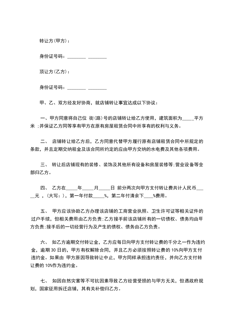 (三) 商号现承租坐落 市路号的租赁权,由甲方让与乙方,并由甲方负责出租人与乙方办理续租年,与乙方另行换立租约,如出租人不允许续租或要求增加租金或提出其他条件,致乙方受害时,甲方应负赔偿责任。