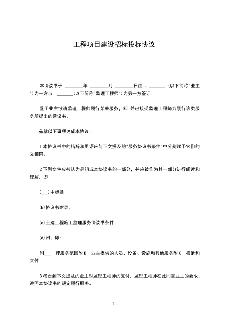 本协议书于 ________年 ________月 ________日由 、_______ (以下简称"业主")为一方与 _______(以下简称"监理工程师")为另一方签订。