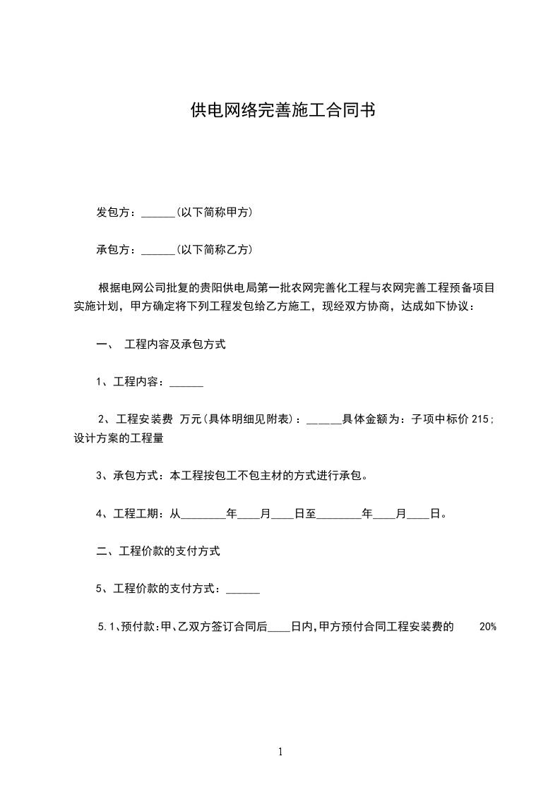 根据电网公司批复的贵阳供电局第一批农网完善化工程与农网完善工程预备项目实施计划,甲方确定将下列工程发包给乙方施工,现经双方协商,达成如下协议: