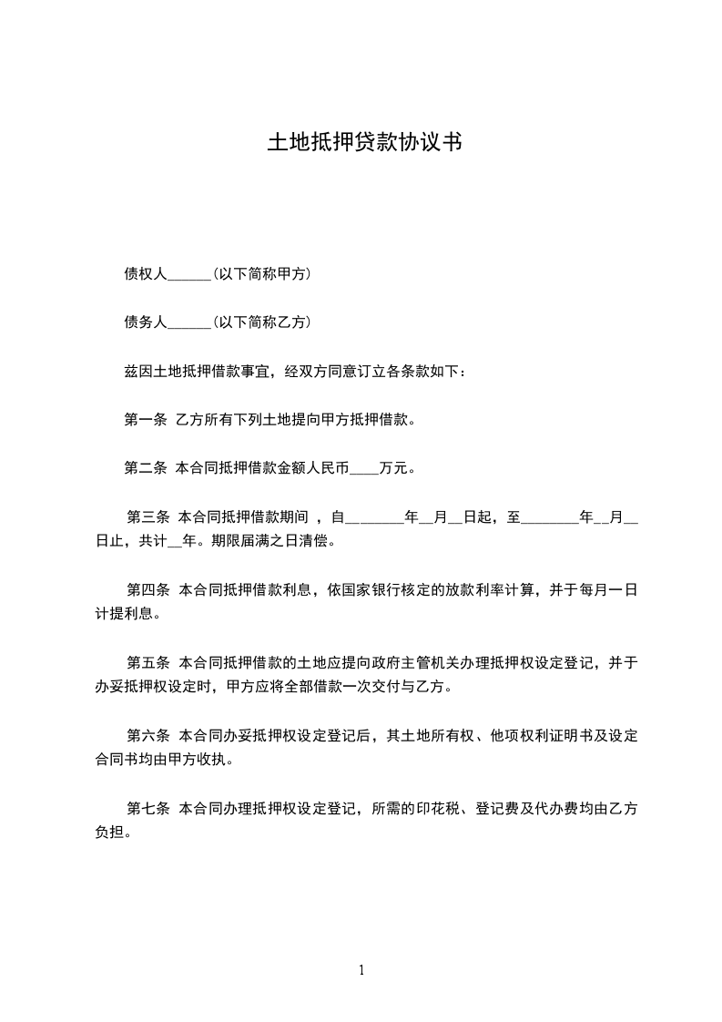兹因土地抵押借款事宜,经双方同意订立各条款如下: