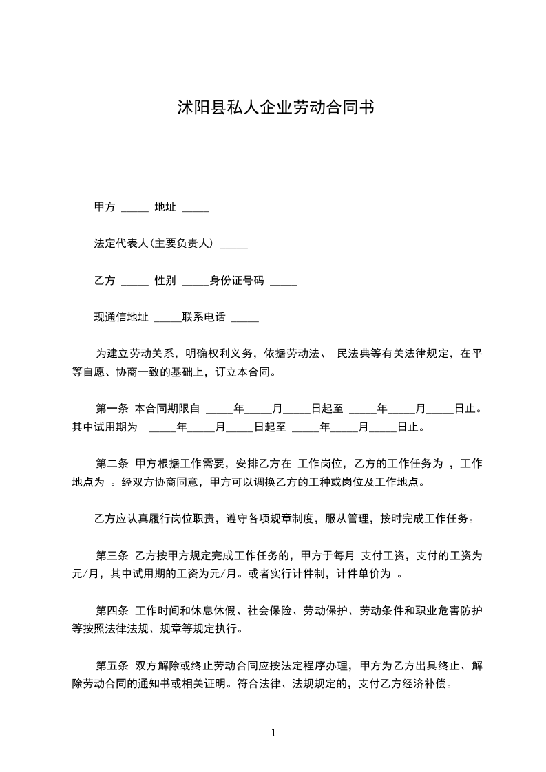 第一条 本合同期限自 _____年_____月_____日起至 _____年_____月_____日止。其中试用期为 _____年_____月_____日起至 _____年_____月_____日止。