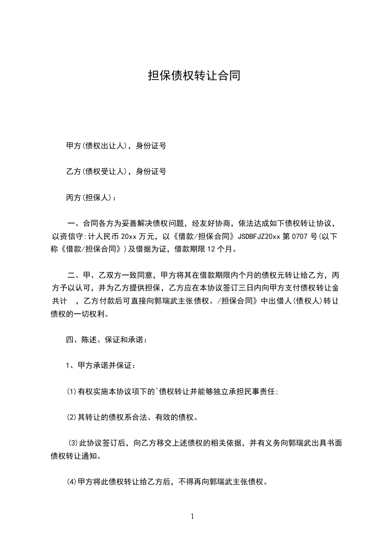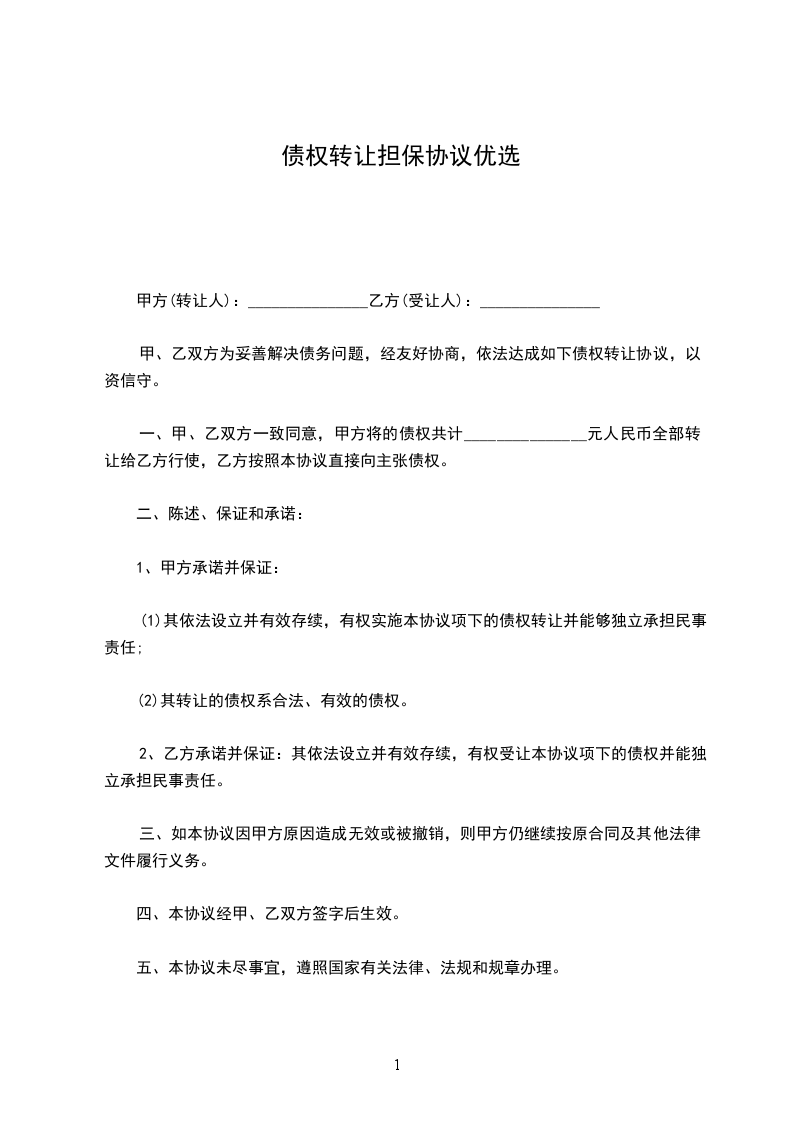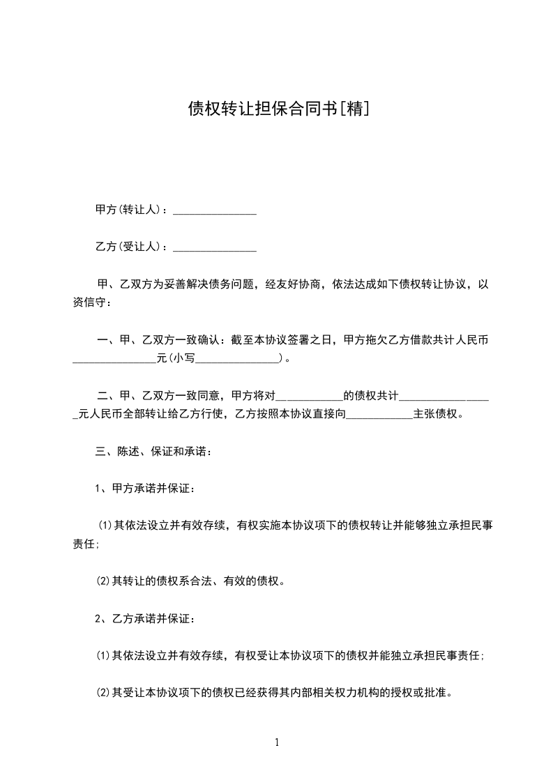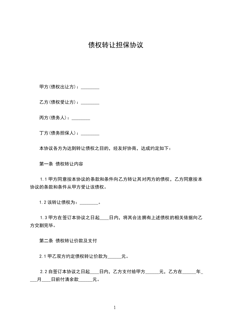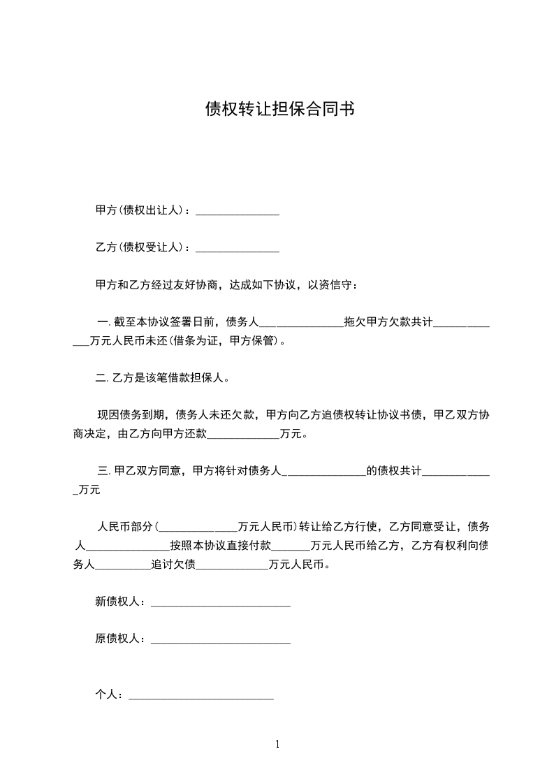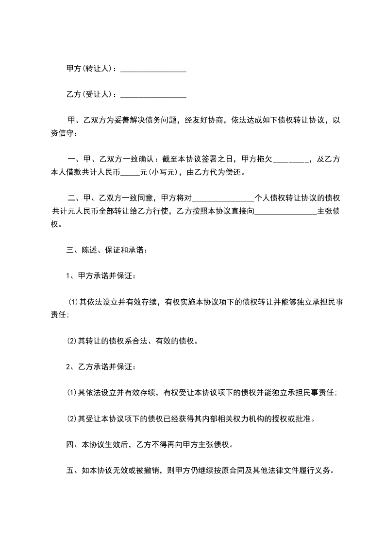 1.乙方原欠_________公司人民币贷款本金_________元及其利息未偿还,后_________公司将该债权转至甲方名下。