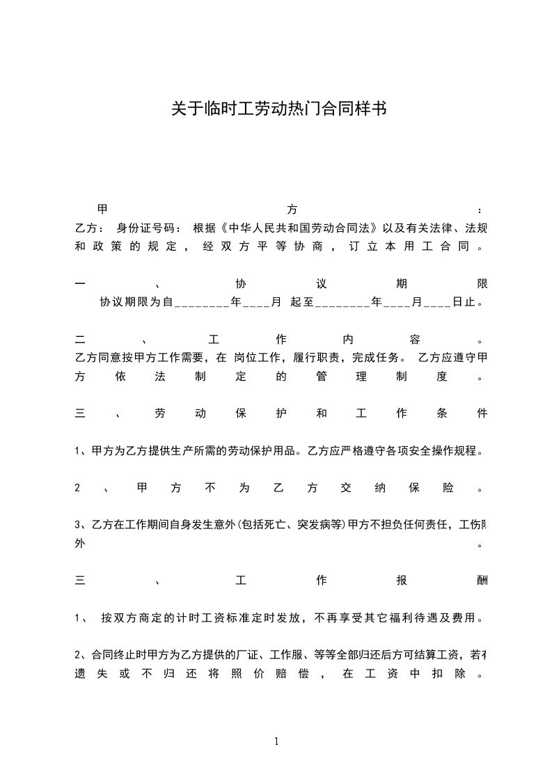 乙方: 身份证号码: 根据《中华人民共和国劳动合同法》以及有关法律、法规和政策的规定,经双方平等协商,订立本用工合同。
