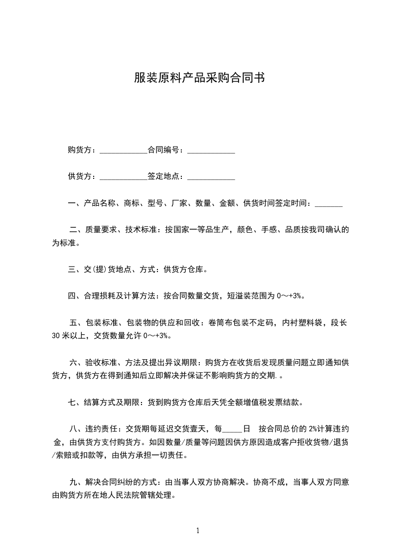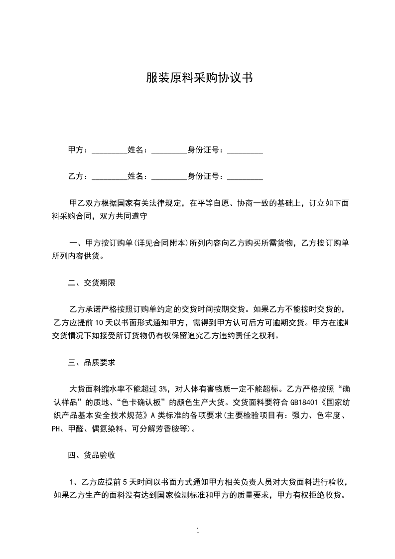 甲乙双方根据国家有关法律规定,在平等自愿、协商一致的基础上,订立如下面料采购合同,双方共同遵守