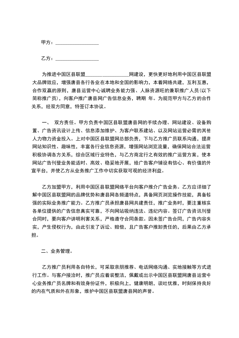 (一)乙方在签订本协议后两个工作日内,乙方网站上发布甲方的委托招聘信息。