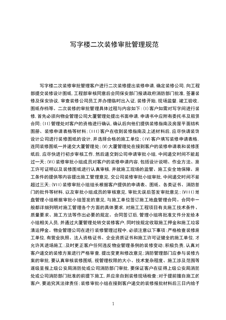 2.装修前必须将电工操作证、装修负责人安全管理证复印件送交物业管理部审核,经物业部和安监局确认后方可施工。