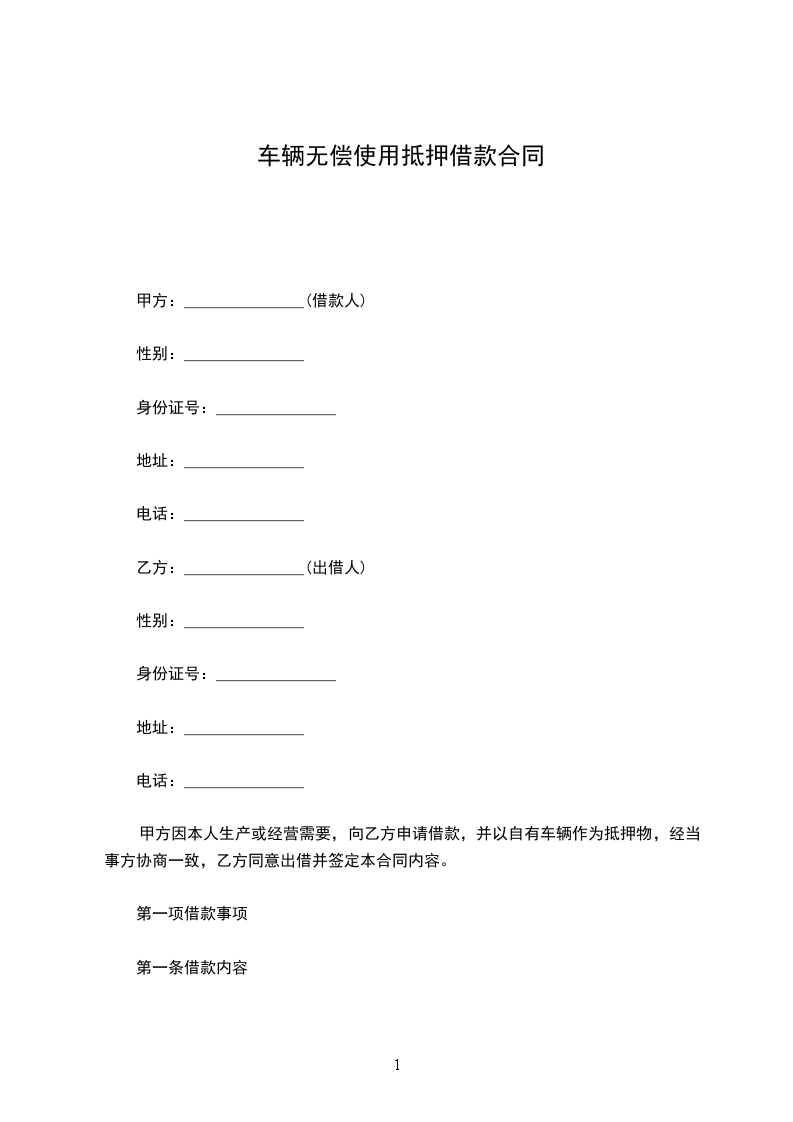 甲方因本人生产或经营需要,向乙方申请借款,并以自有车辆作为抵押物,经当事方协商一致,乙方同意出借并签定本合同内容。