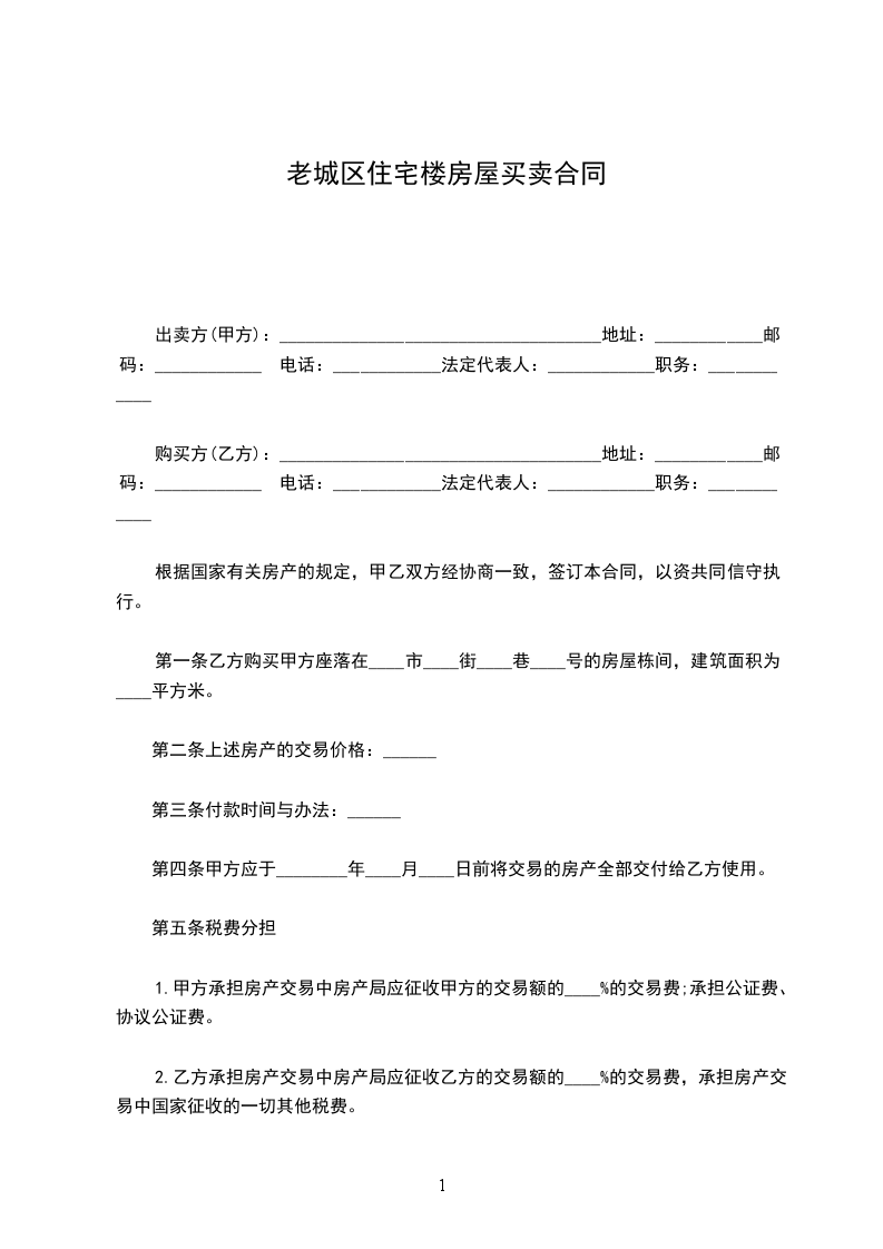 第五条 税费分担甲乙双方应遵守国家房地产政策、法规,并按规定缴纳办理房地产过户手续所需缴纳的税费。经双方协商,交易税费由_______方承担,中介费及代办产权过户手续费由______方承担。