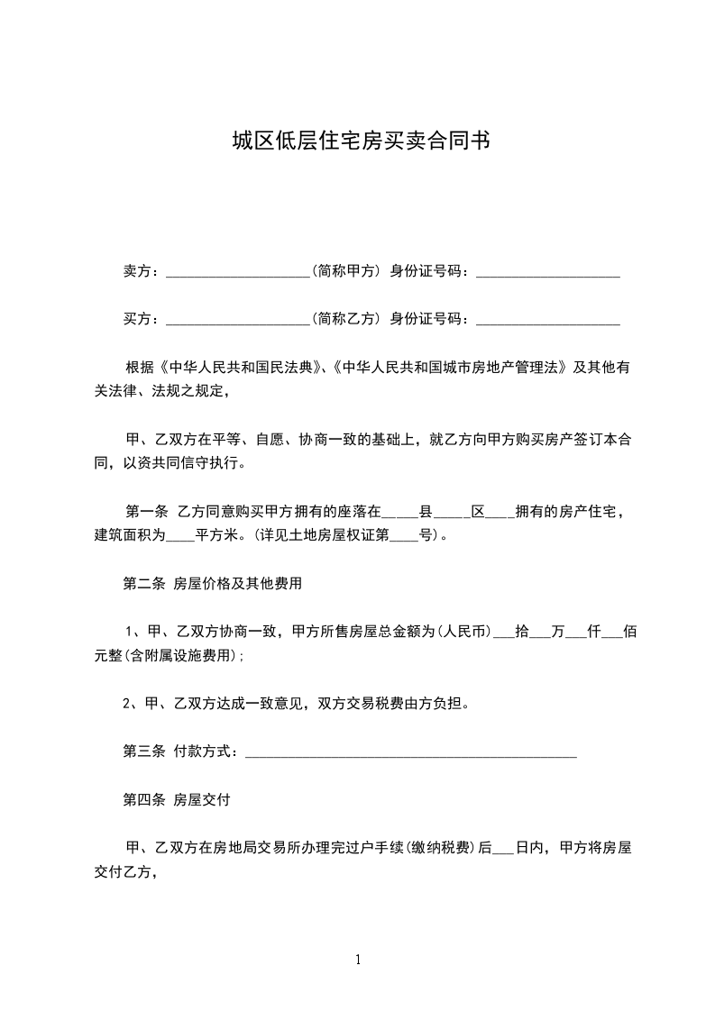 买方:_______________(简称乙方) 身份证号码:_____________________