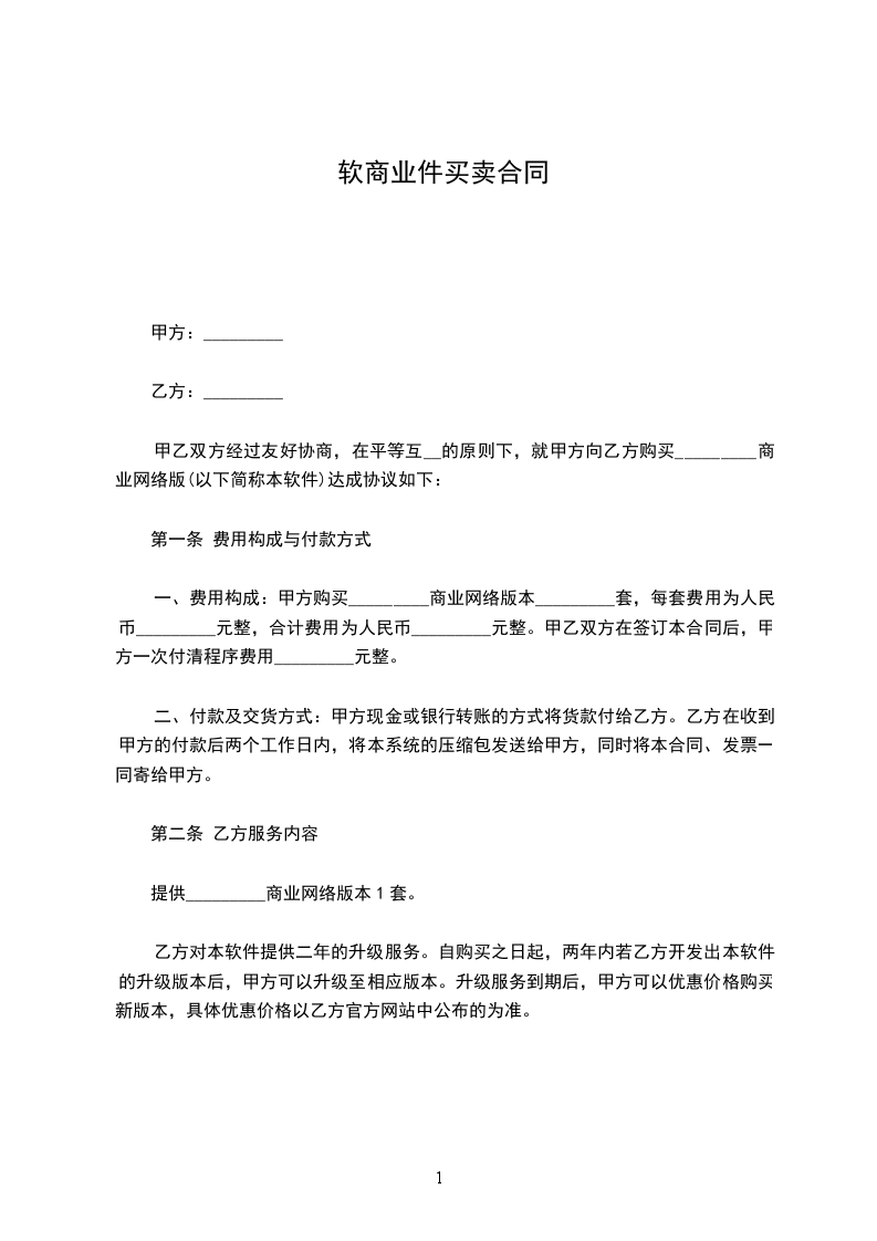 甲乙双方经过友好协商,在平等互__的原则下,就甲方向乙方购买_________商业网络版(以下简称本软件)达成协议如下: