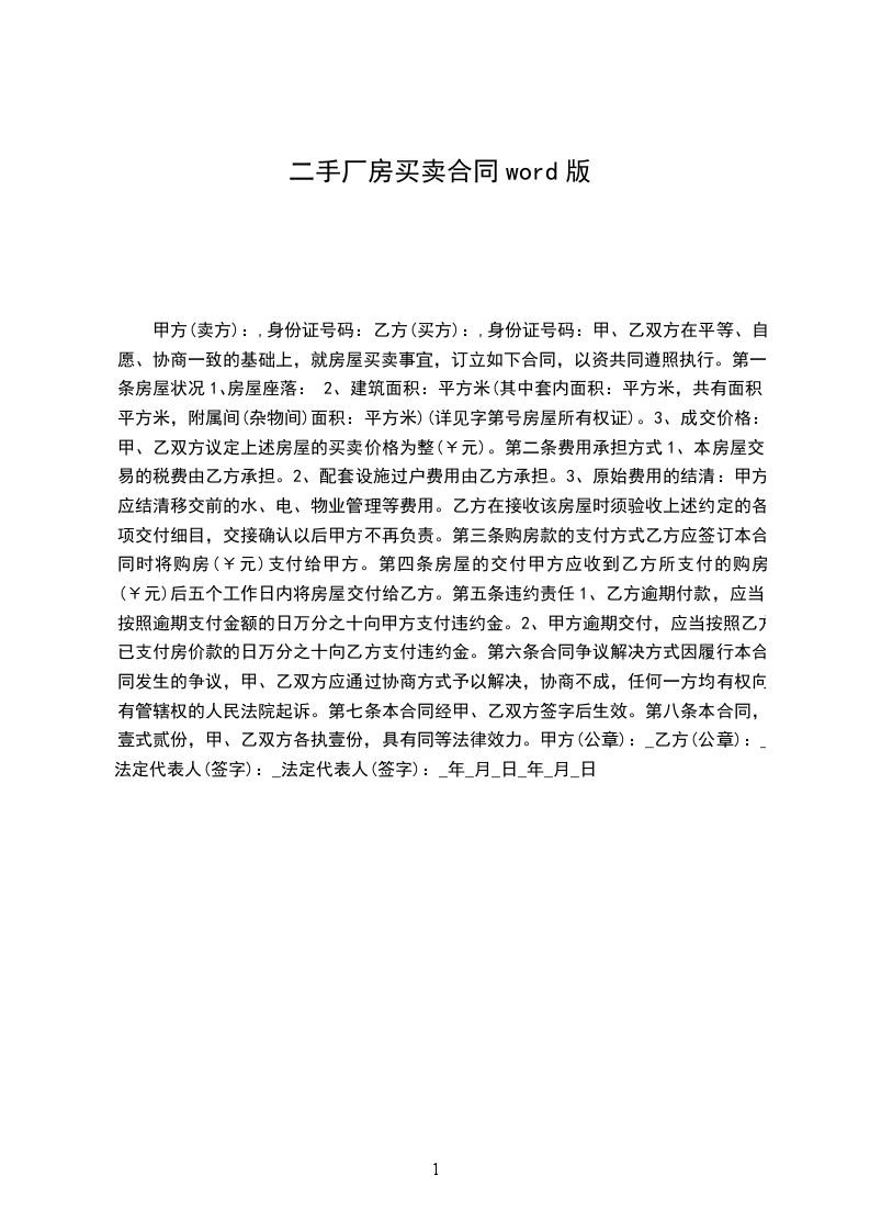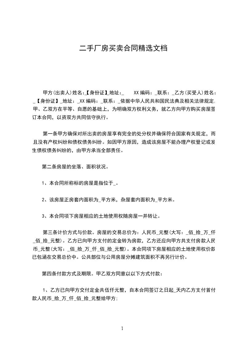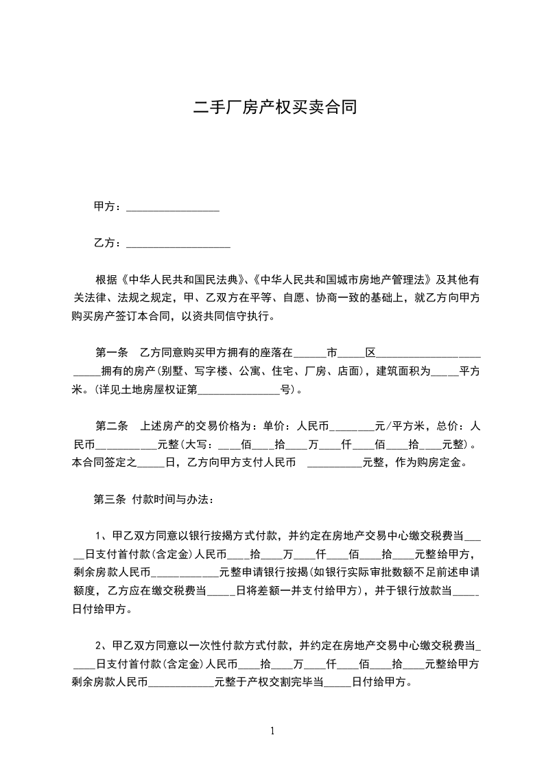 第一条乙方同意购买甲方拥有的座落在______市_____区_______________拥有的房产(别墅、写字楼、公寓、住宅、厂房、店面),建筑面积为_____平方米。(详见土地房屋权证第_______________号)
